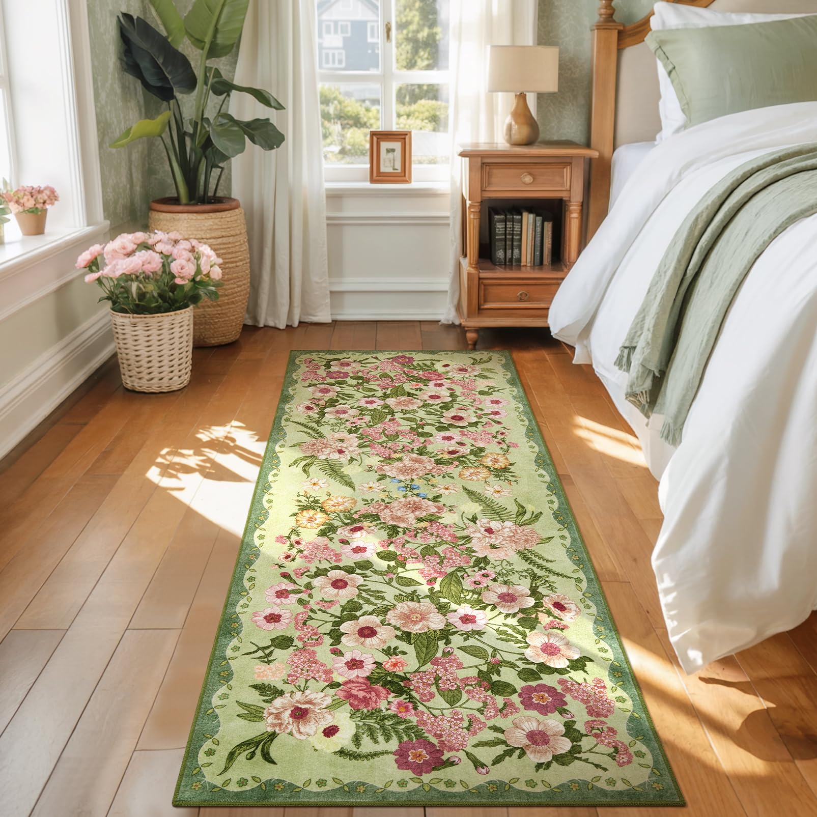 Alfombra de pasillo lavable floral de 2 x 6 pulgadas, alfombra pequeña y suave para dormitorio con parte trasera antideslizante, a