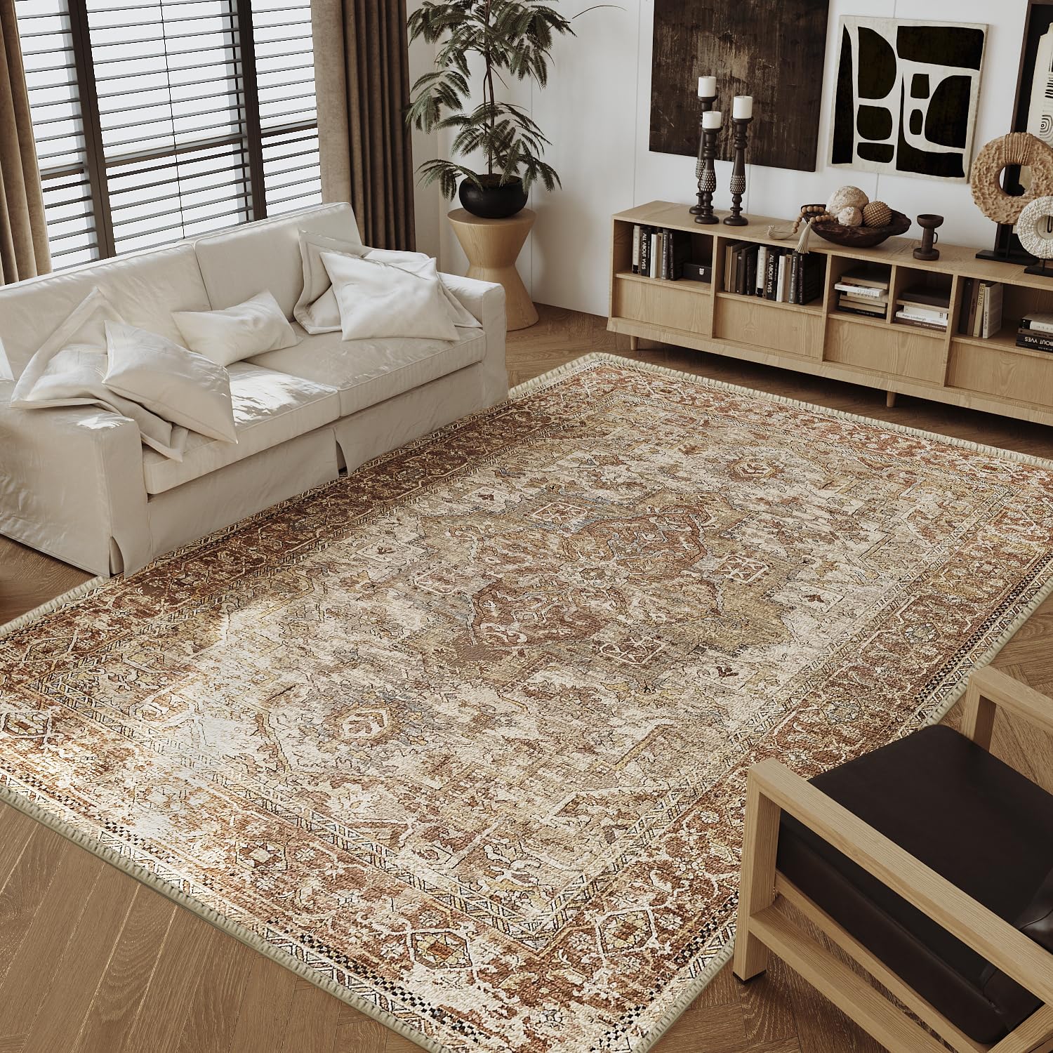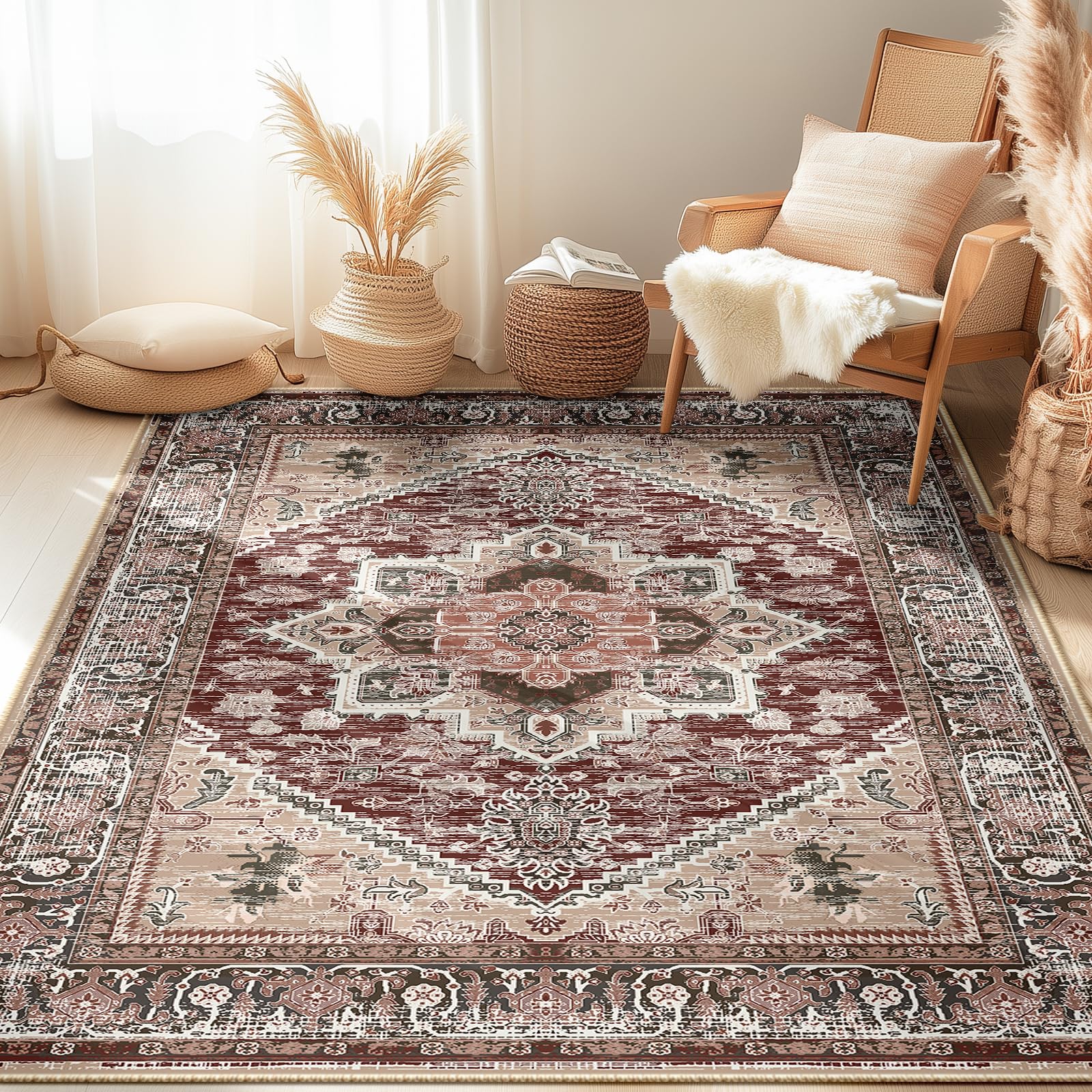 H.VERSAILTEX Alfombra vintage de 4 x 6 pies, suave, bohemio, lavable a máquina, tapete de entrada, antideslizante, apto para masco
