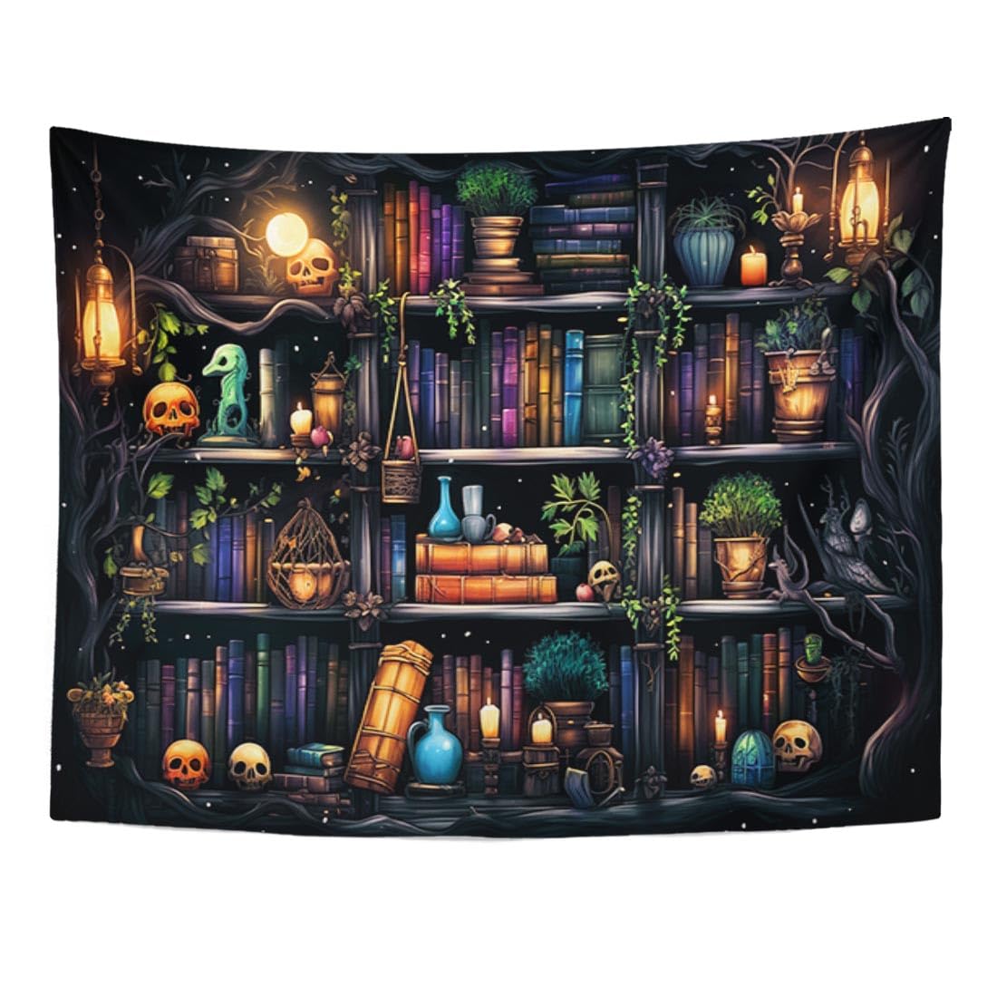 Nesphy Tapiz de estantería para dormitorio, diseño de calavera y libro mágico Trippy, vintage, estético, decoración del hogar, par