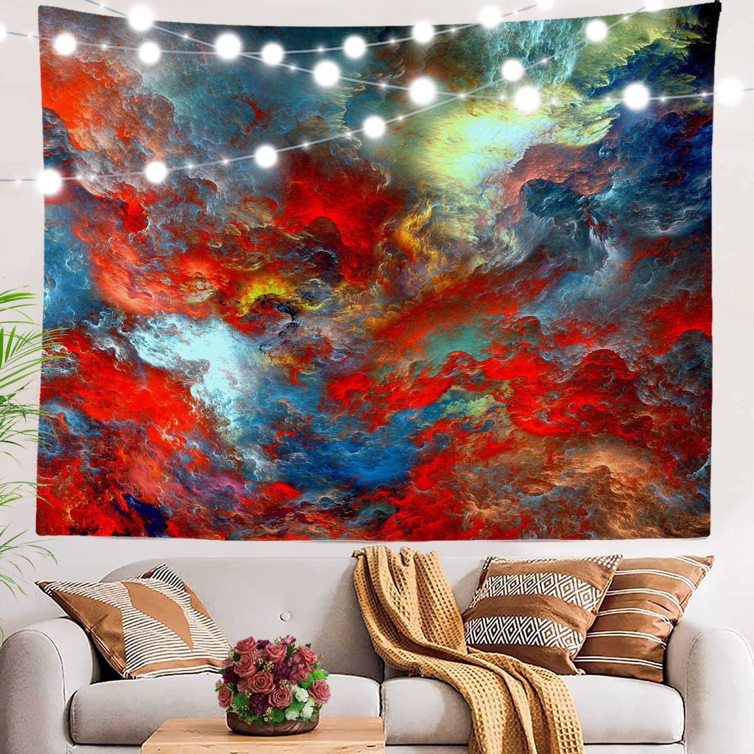 BaoNews Tapiz moderno de nube roja y azul, mantel grande de poliéster para colgar en la pared, para dormitorio, habitación, sala d
