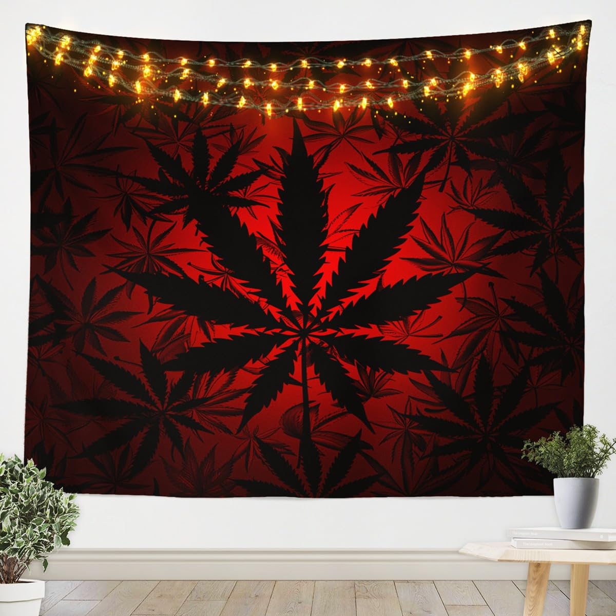 Tapiz de hojas de marihuana mediano de 59 x 59 pulgadas para niños y adolescentes, tapiz de hojas de cannabis para estética de dor