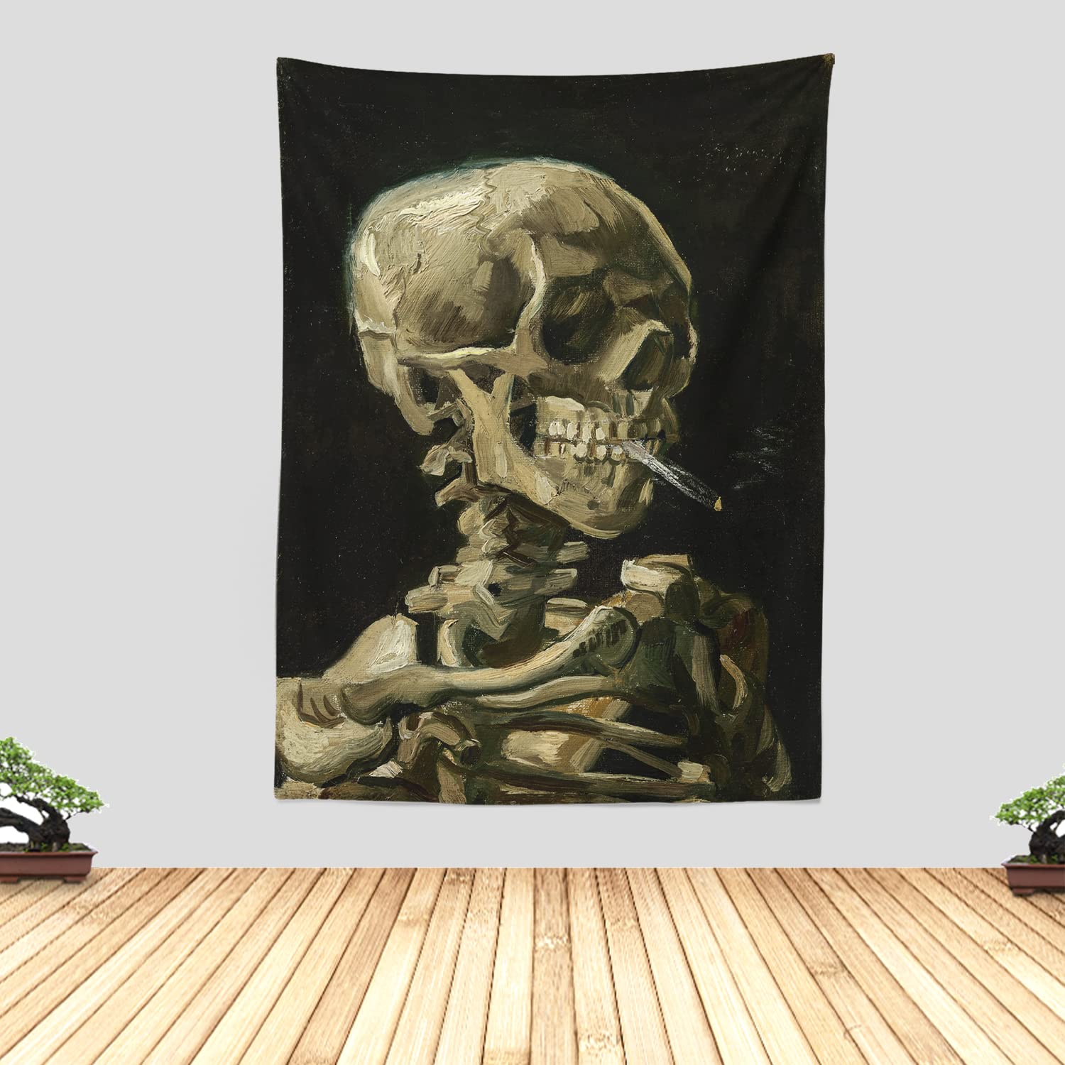 Chitteri Vincent van Gogh – Tapiz colgante de cabeza de esqueleto de 60 x 45 pulgadas, arte de pared de poliéster para decoración