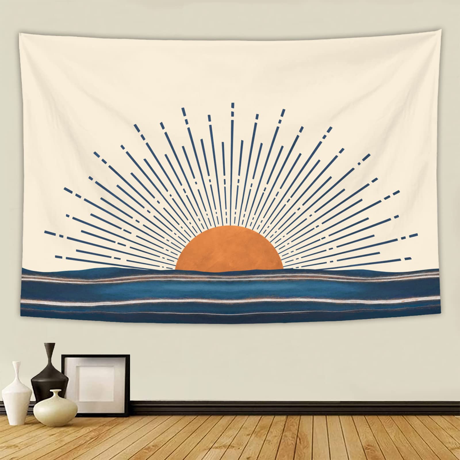 Tapiz bohemio abstracto de amanecer horizontal, atardecer, decorativo, retro, estético, bohemio, abstracto, minimalista, hippie, p