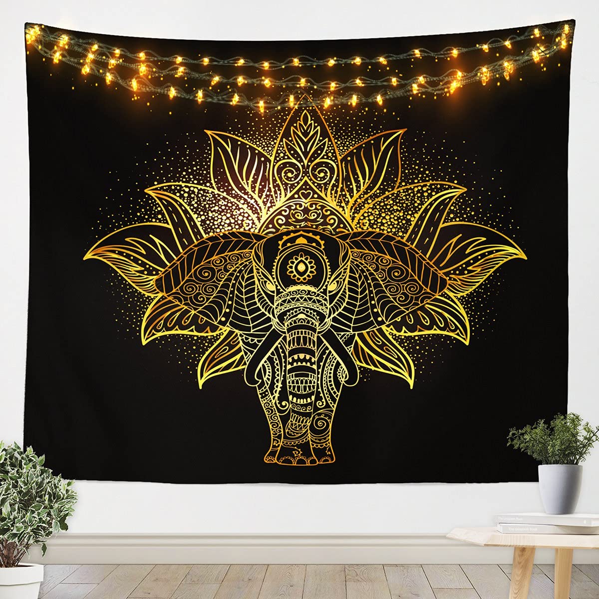 Tapiz de elefante dorado para colgar en la pared, estilo bohemio, exótico, manta de pared para niños y niñas, diseño tribal de ele