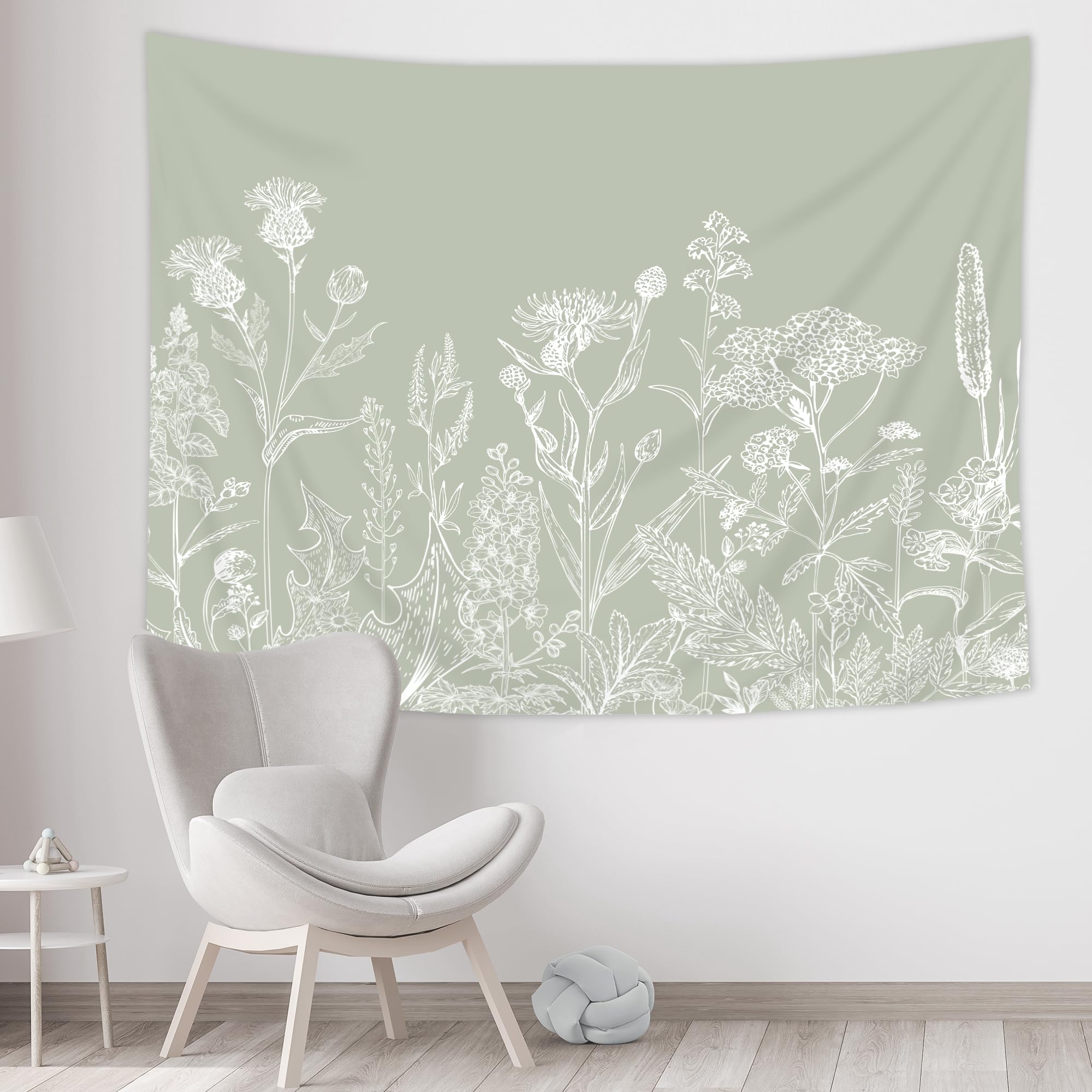 Riyidecor Tapiz floral verde salvia de flores silvestres de 80 pulgadas de ancho x 60 pulgadas de alto, plantas, botánica botánica