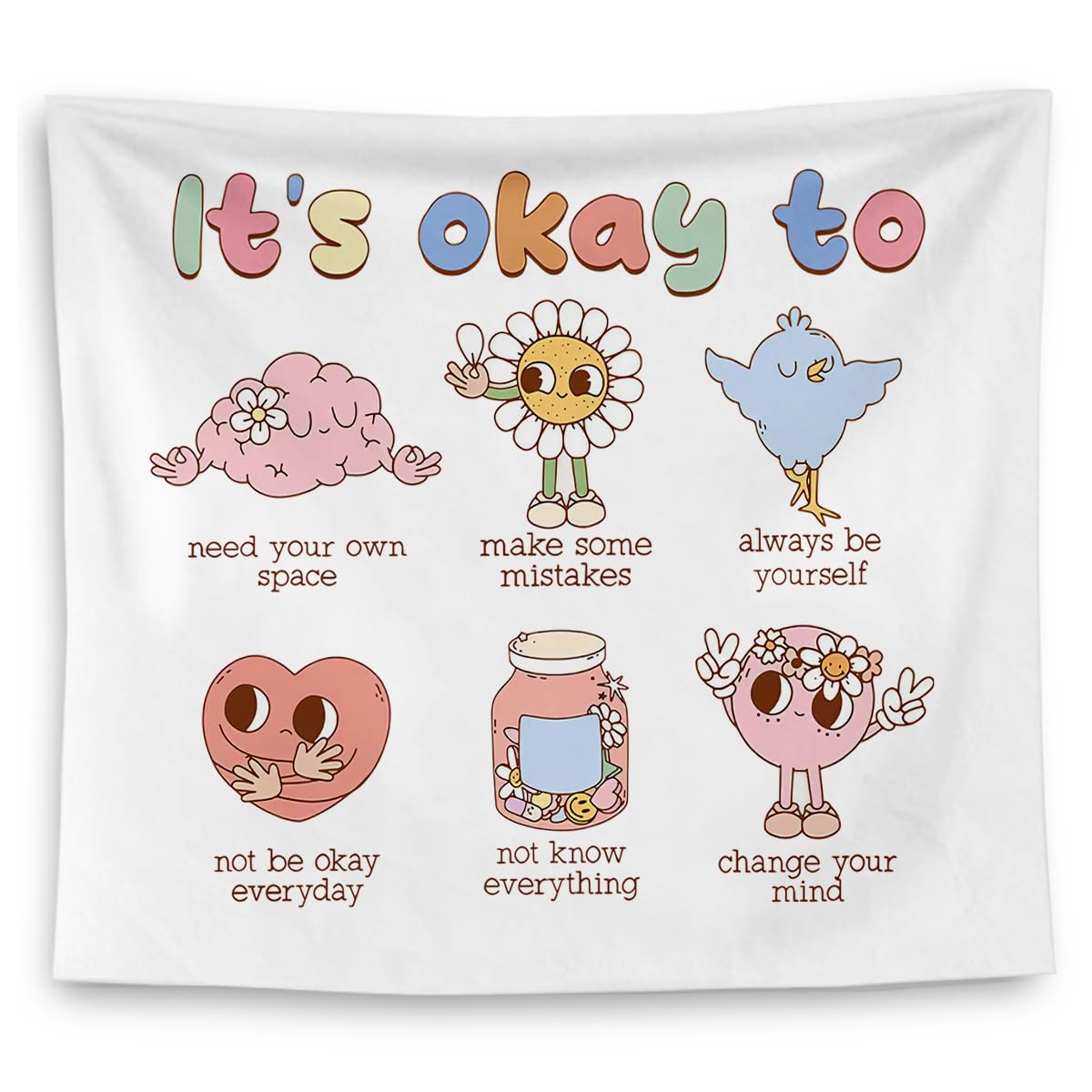 QGFM Tapiz de salud mental, colgante de pared para aula, asesoramiento escolar, decoración de oficina de terapia, 50 x 60 pulgadas