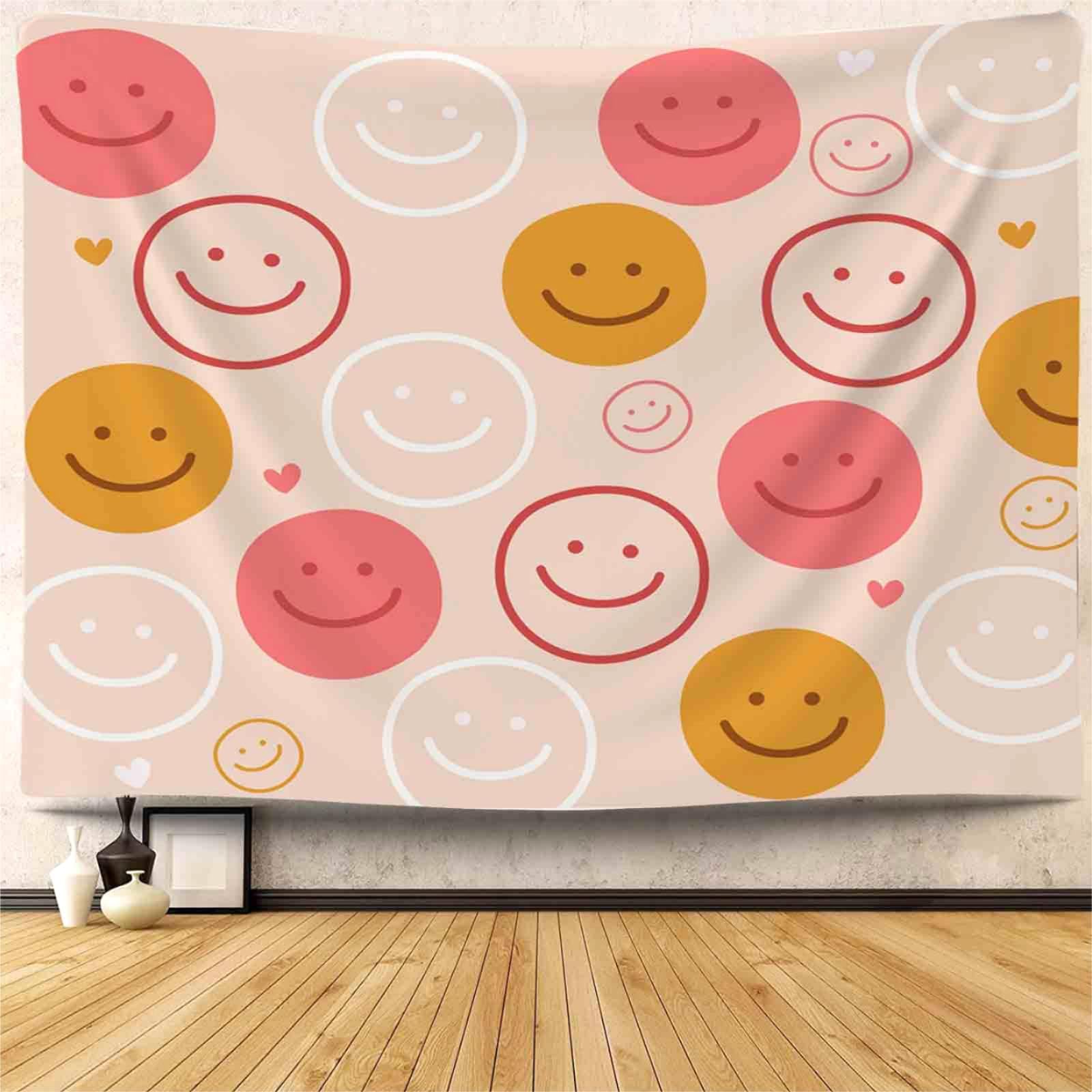 Mocsicka Tapiz de cara sonriente, retro, lindo, vintage, divertido, estético, de los años 70, tapices rosados, para colgar en la p