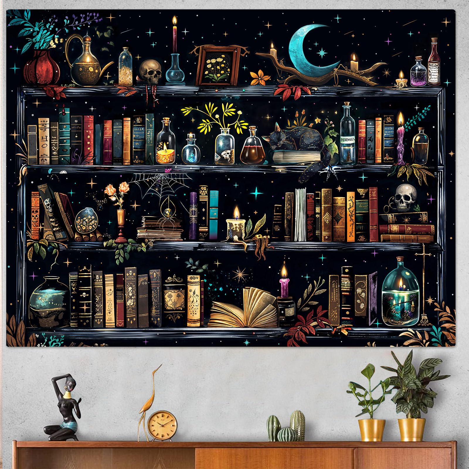 Accnicc Tapiz mágico para estantería mágica, poción de bruja, hippie, oscuro, Haloween tapices para colgar en la pared, diseño de