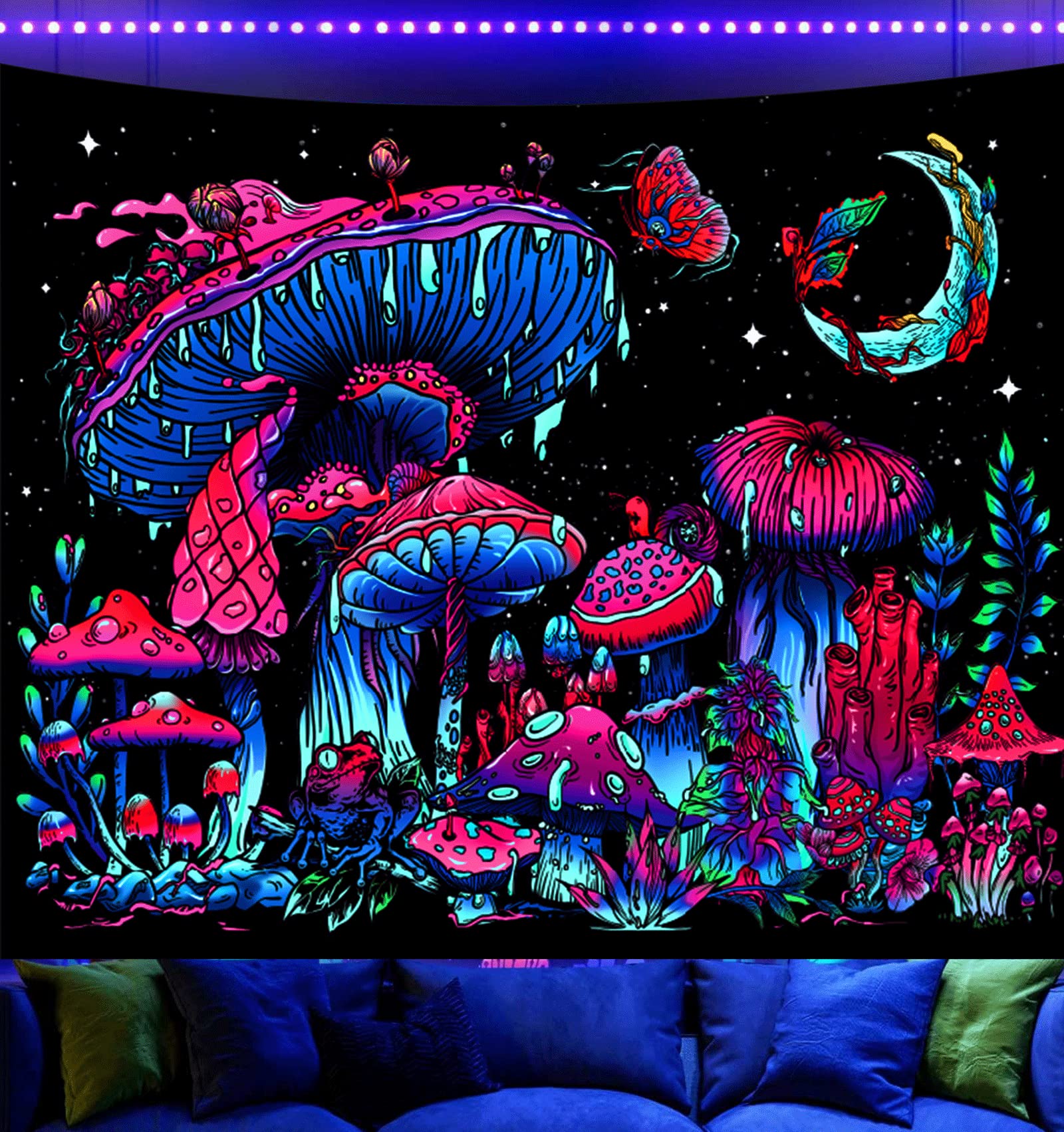 Onivein Tapiz de hongos con luz negra que brilla en la oscuridad, tapiz de plantas de fantasía reactivo a los rayos UV, luna, mari