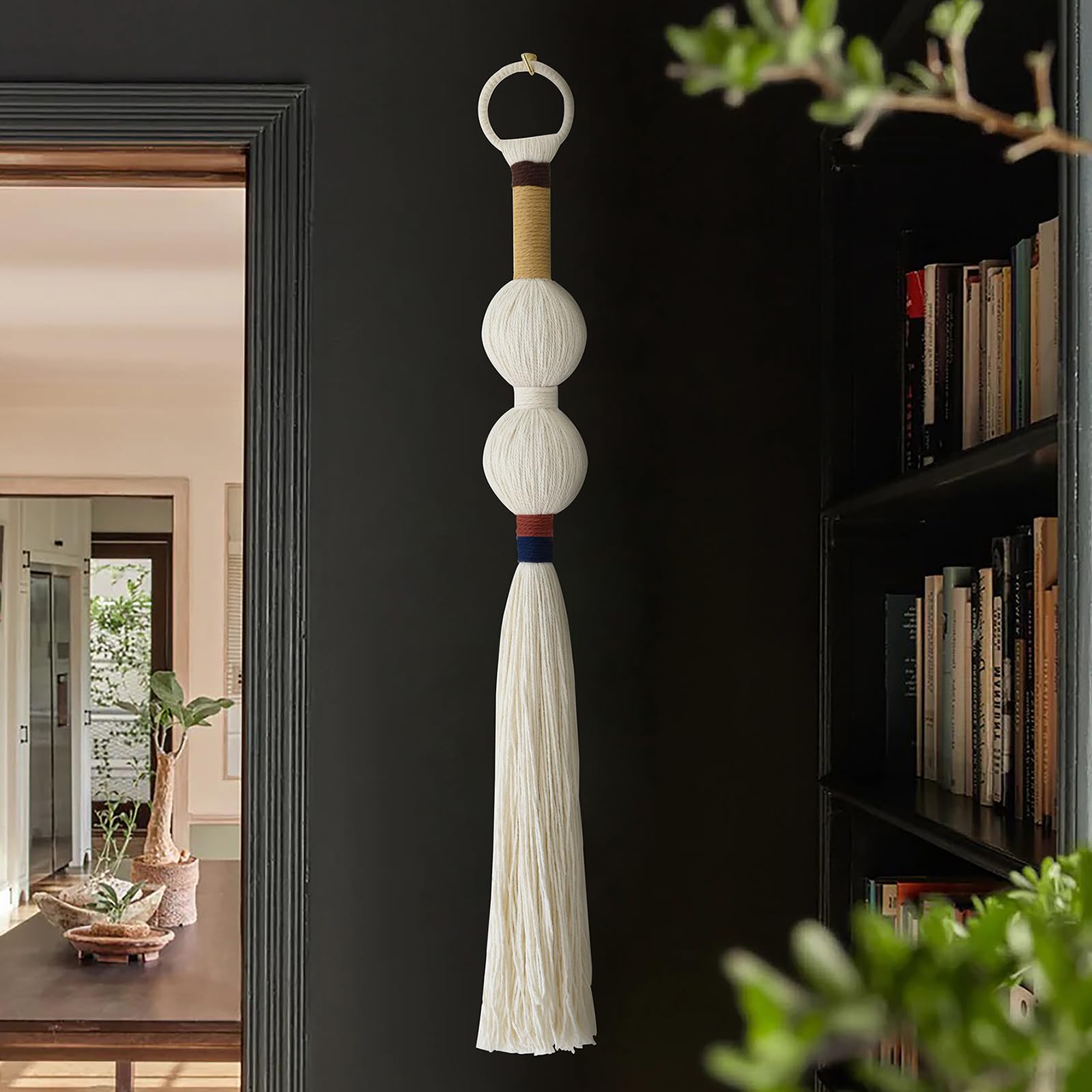 Flber Macramé para colgar en la pared en blanco y negro, decoración de pared bohemia para sala de estar, arte para pared de sala d