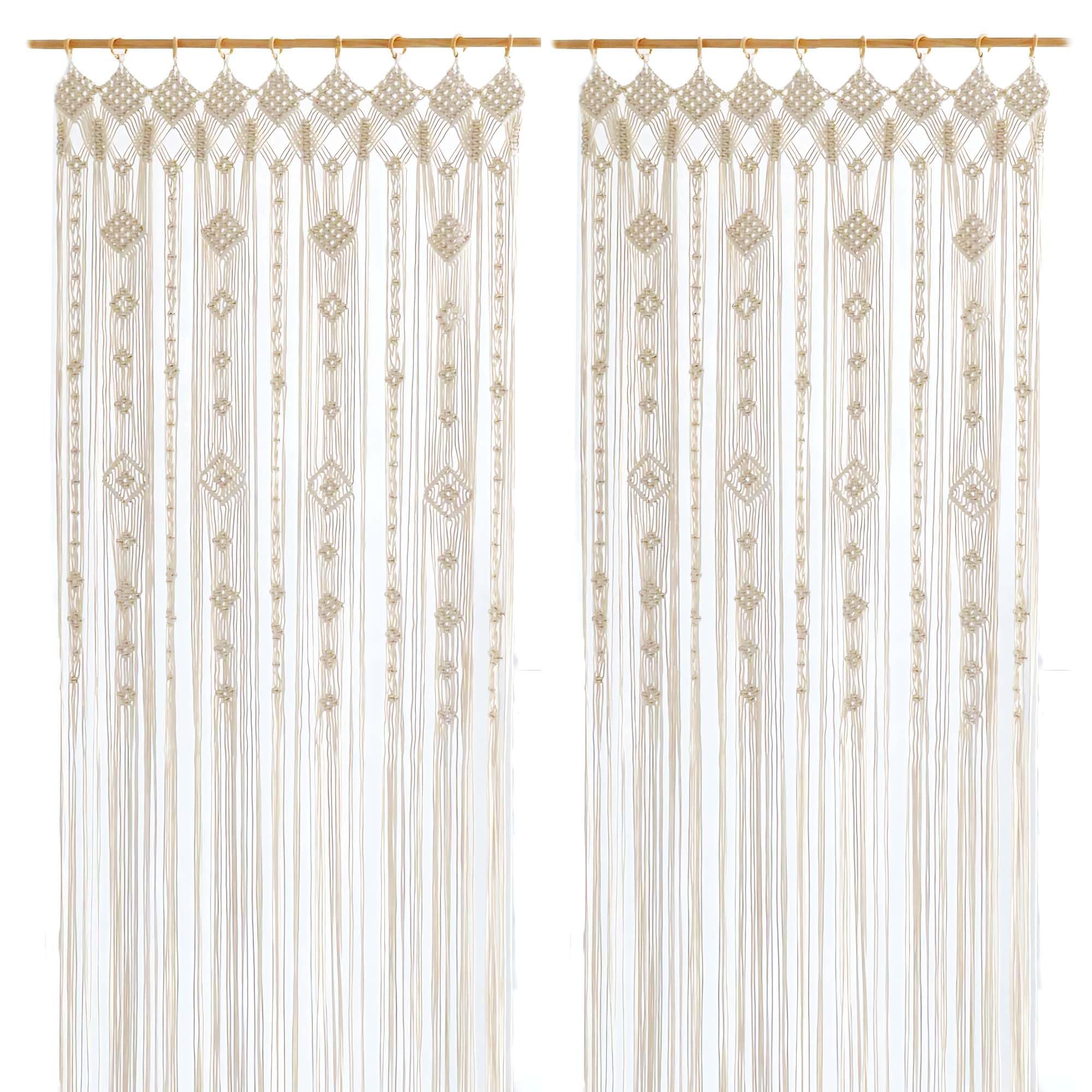 Cortina bohemia de macramé para ventana, divisor de habitación, cortina para puerta, 79 x 35 pulgadas, para colgar en la pared de