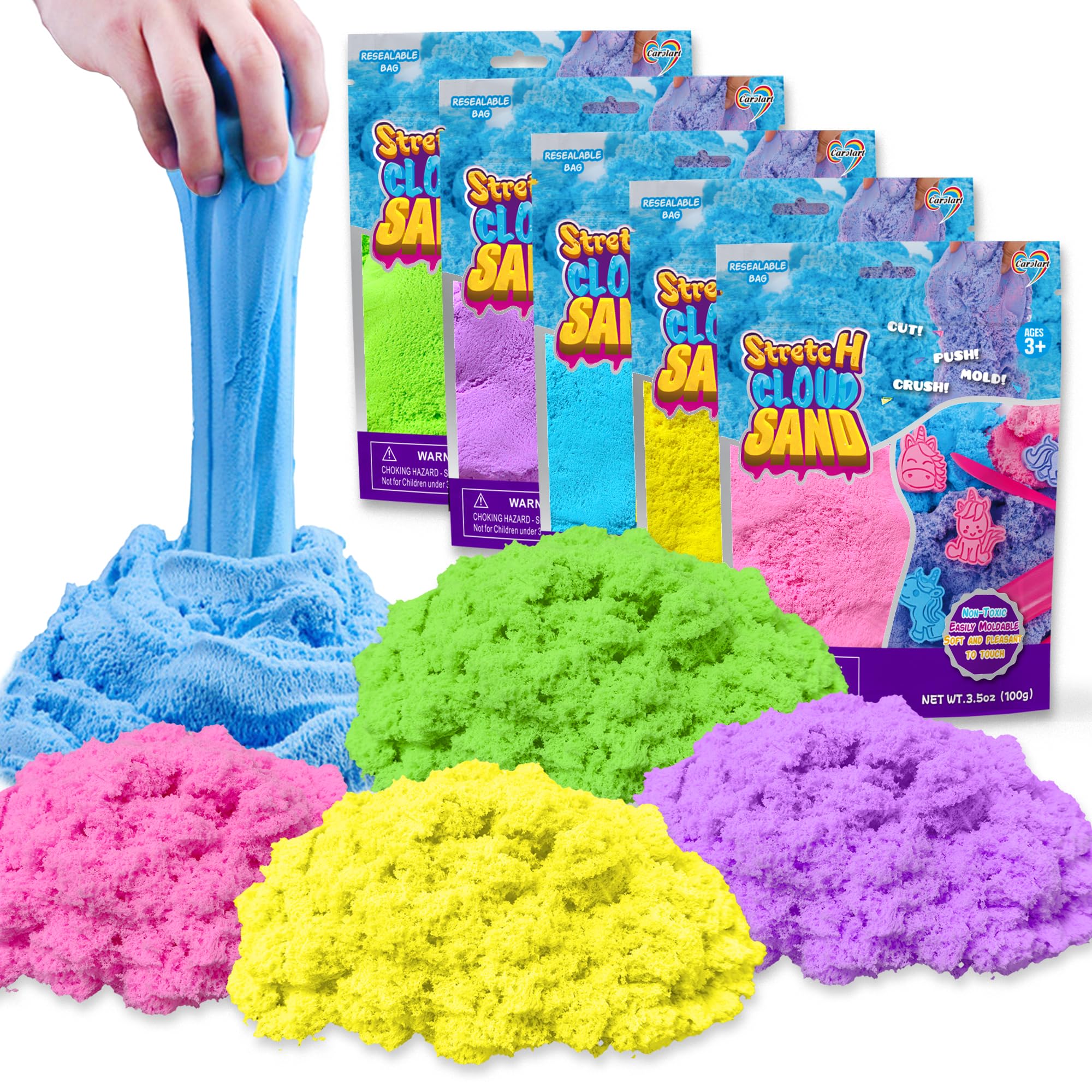Kit de arena sensorial elástica colorida, paquete económico de 5 colores moldeables de arena para niños, repuesto a granel para cu