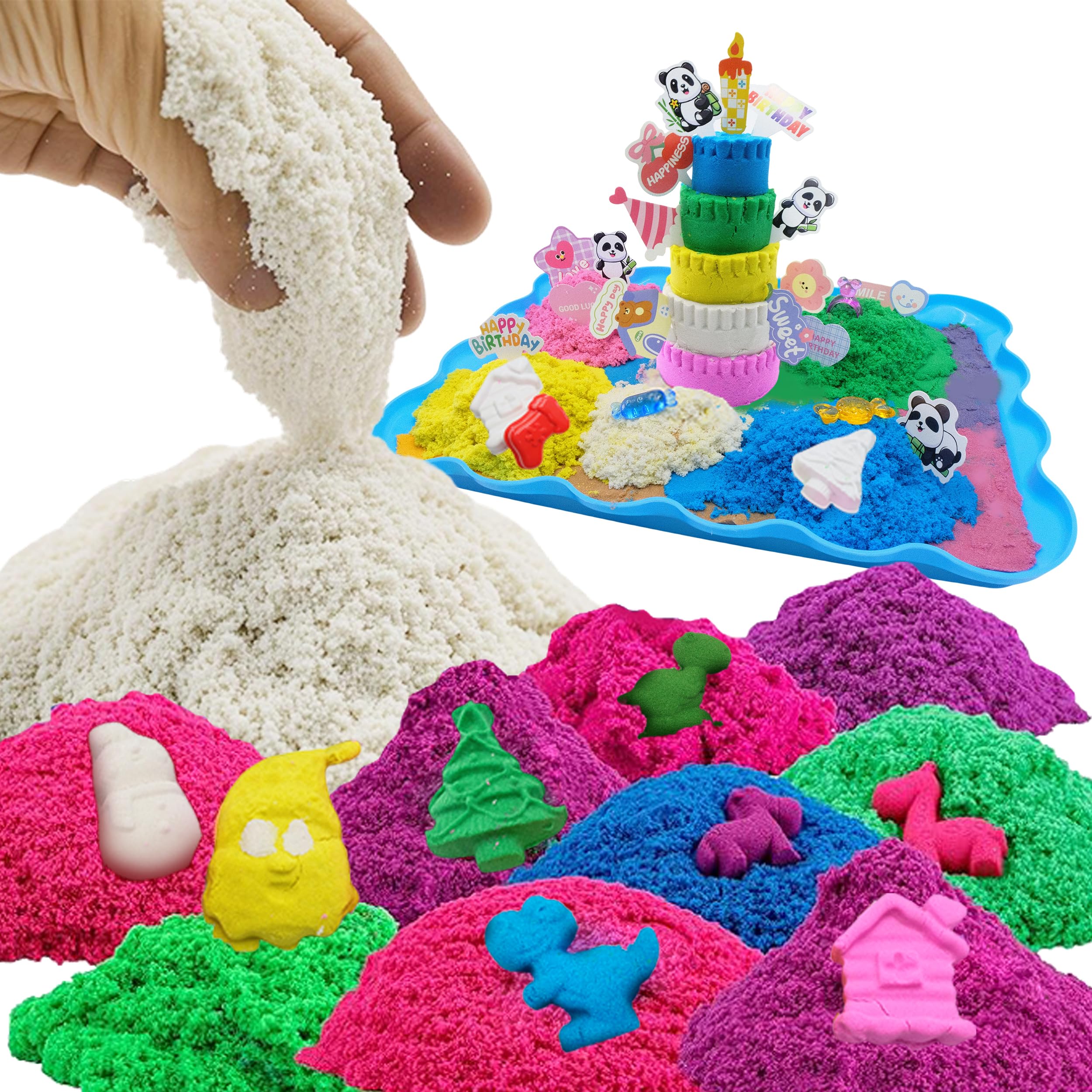 SIGHTEEDA Juego de arena para niños de 3 a 8 años, 1.7 libras, arena sensorial moldeable con moldes y herramientas de casa, juguet