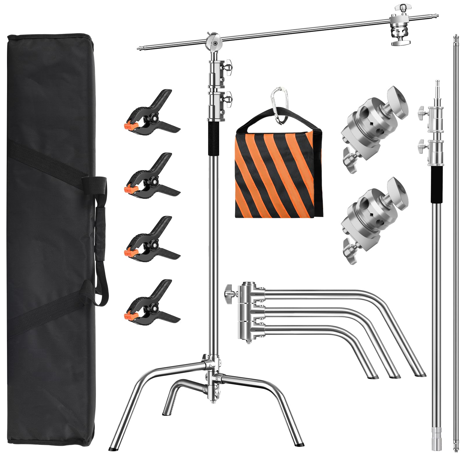 Soporte C resistente de 6.9 pies con brazo de sujeción y bolsa de almacenamiento, cabeza de agarre, soporte de luz de fotografía d