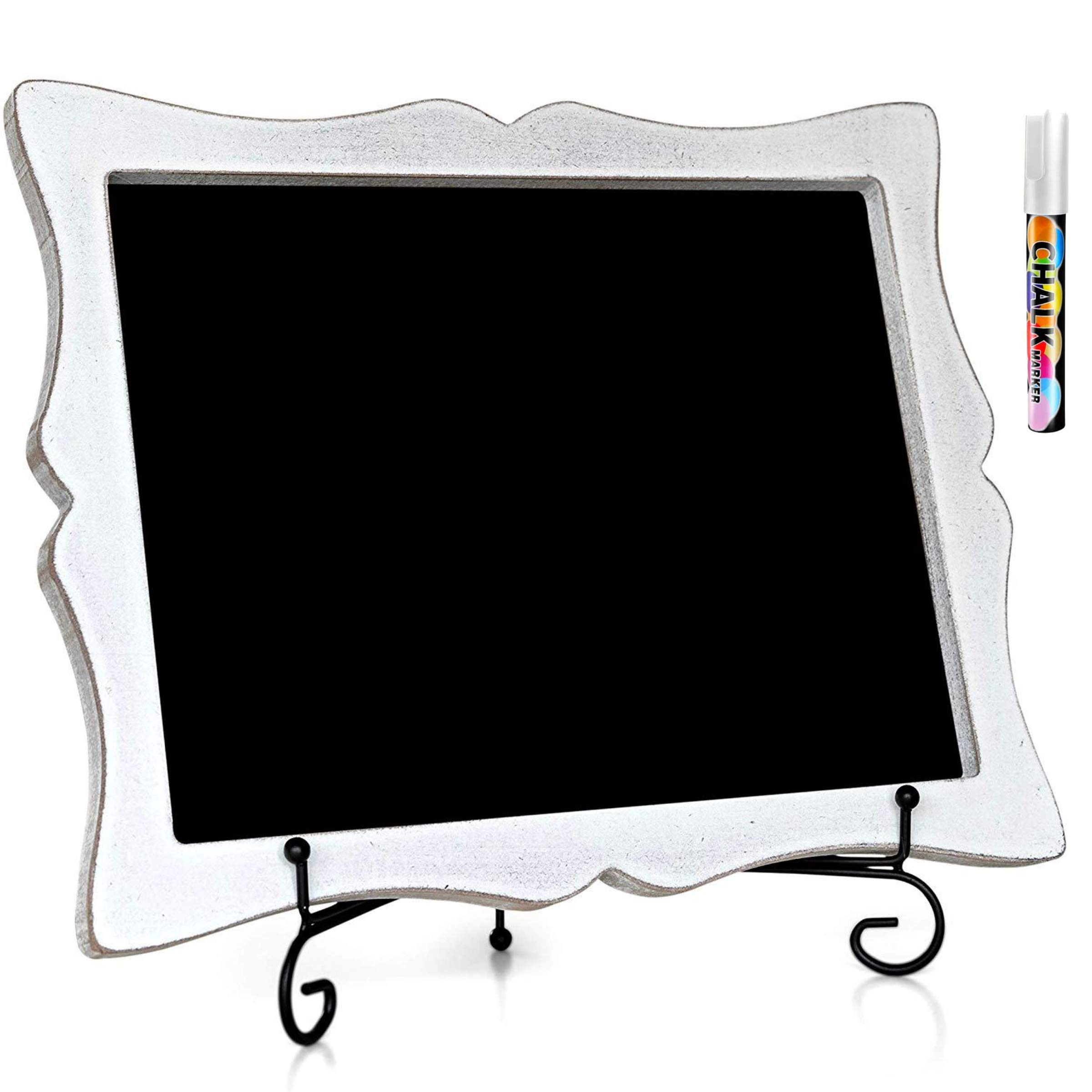 Letrero pequeño de pizarra con caballete (11 x 13) + marcador de tiza líquida blanca | Pizarra enmarcada colgante o independiente