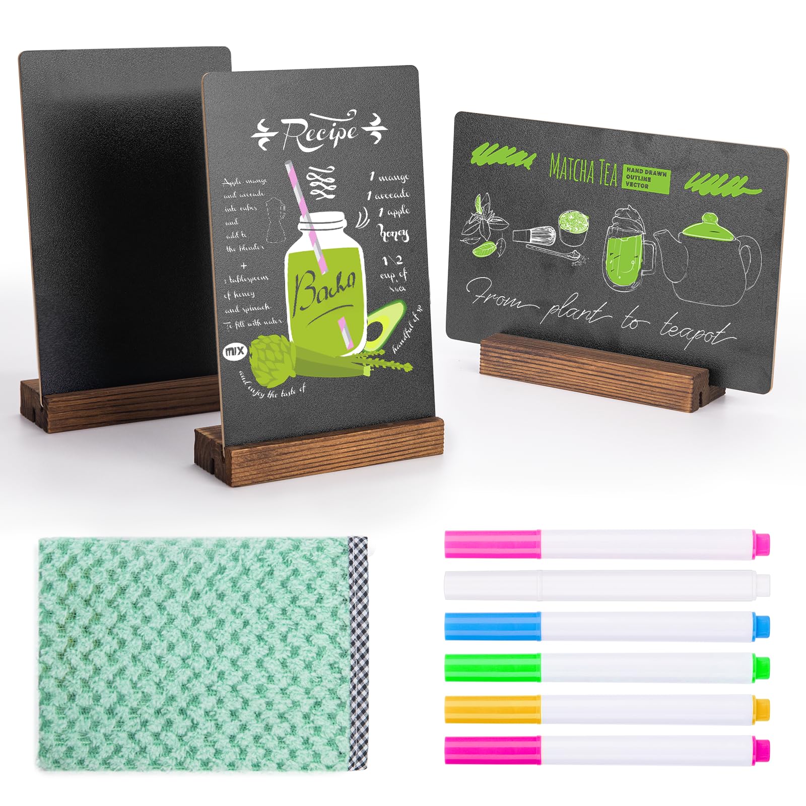3 letreros de pizarra de mesa, 7.8 x 5 pulgadas, tableros de mensajes de doble cara, pizarra con soportes base para cafetería, res