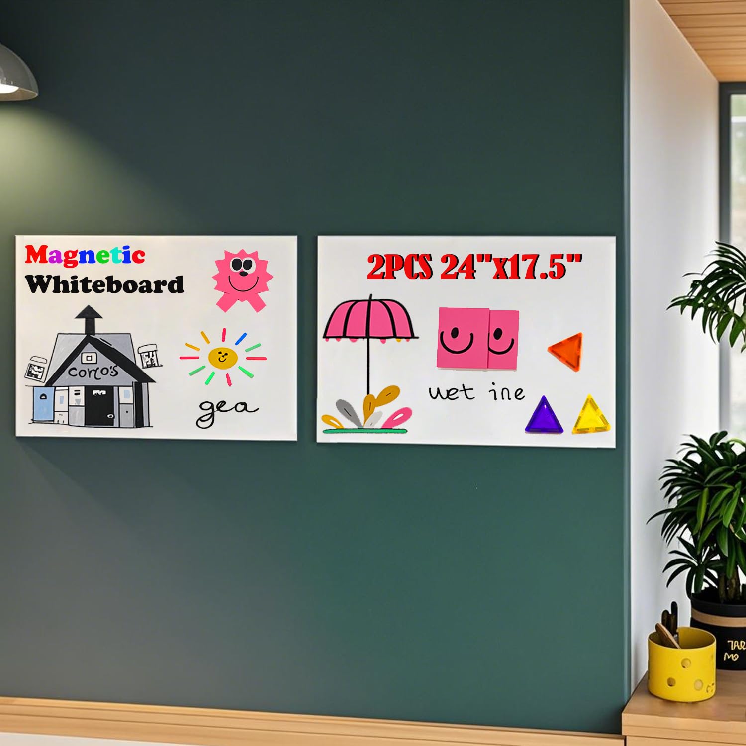 2 piezas de papel magnético de borrado en seco para pizarra blanca de 24 x 17.5 pulgadas, autoadhesivo con marcador, borrador magn