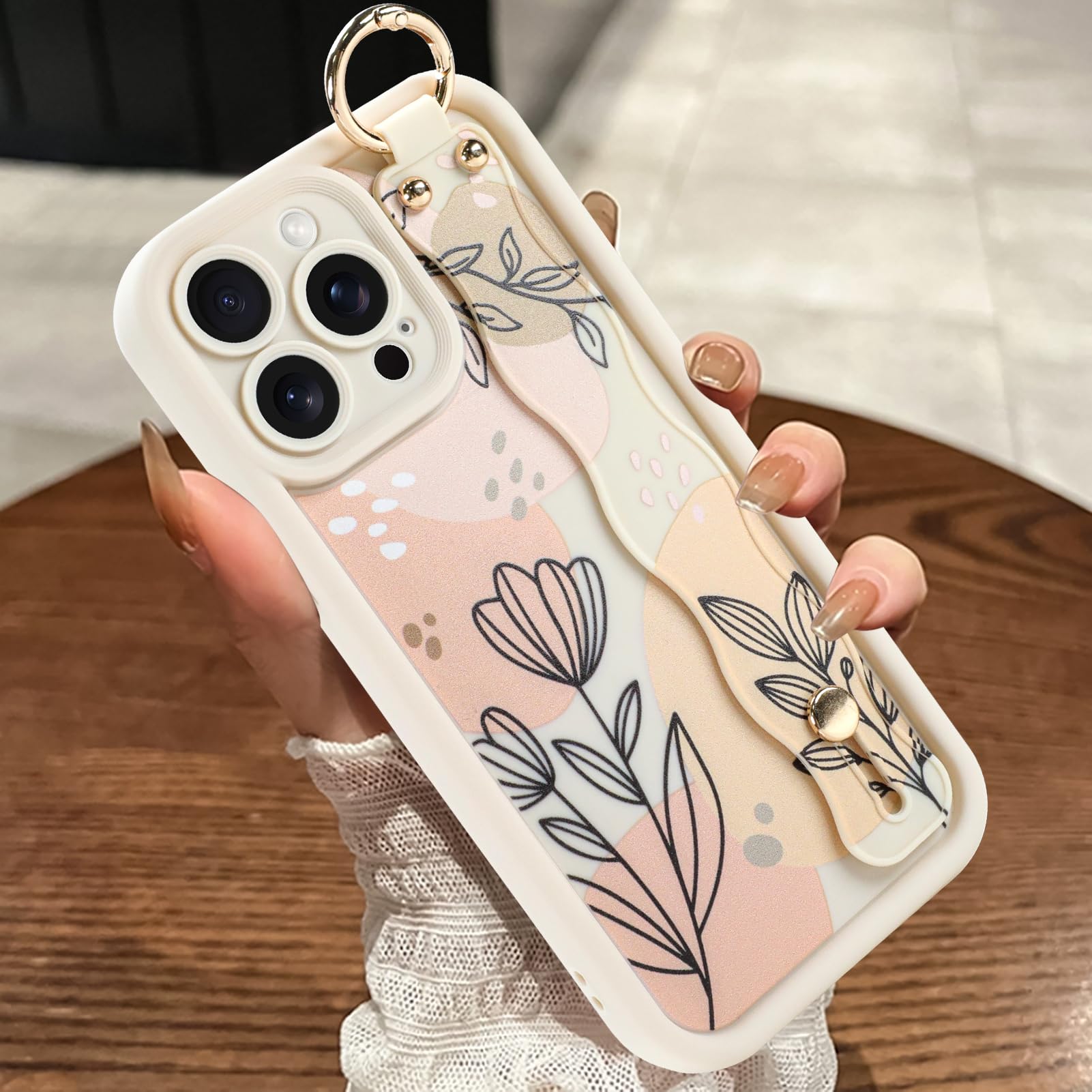 MOWIME Funda compatible con iPhone 15 Pro Max con correa para la muñeca, [actualizada], funda protectora de silicona con función a