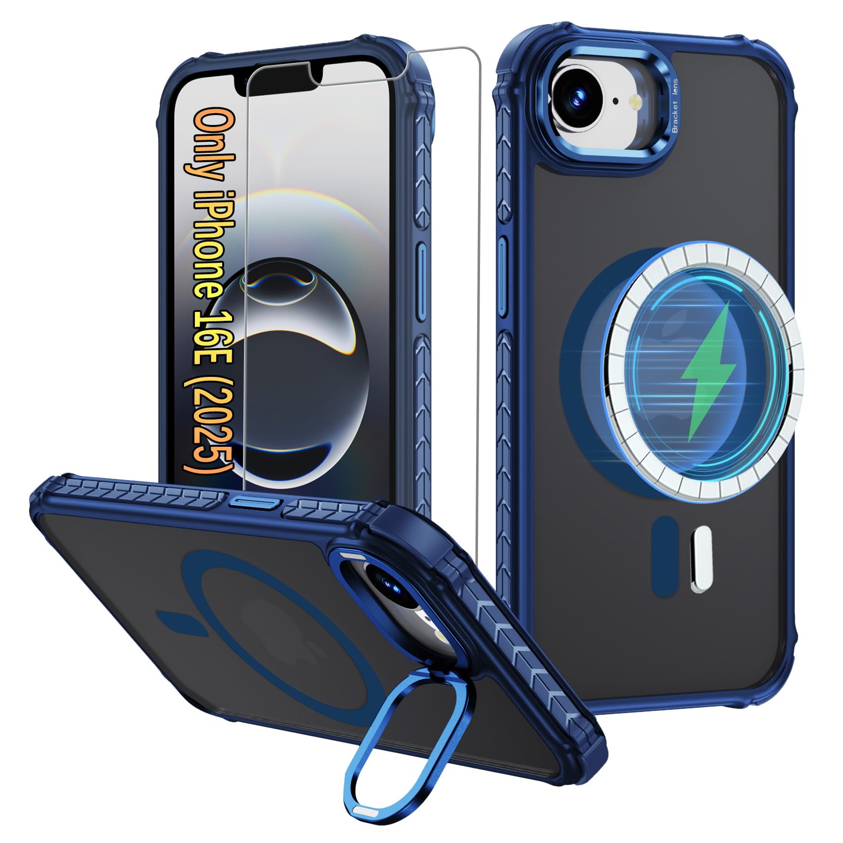 Funda magnética para iPhone 16E de 6.1 pulgadas, con protector de pantalla HD, [carga inalámbrica rápida compatible], funda resist