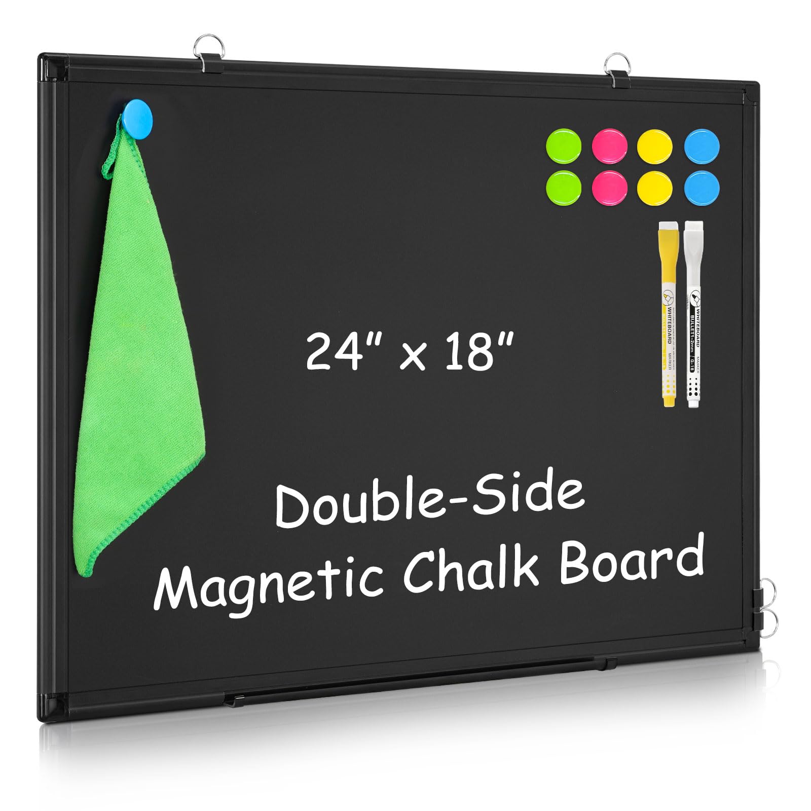 Pizarra magnética de tiza negra de 24 x 18 pulgadas, pizarra magnética de borrado en seco de doble cara para pared, pizarra pequeñ