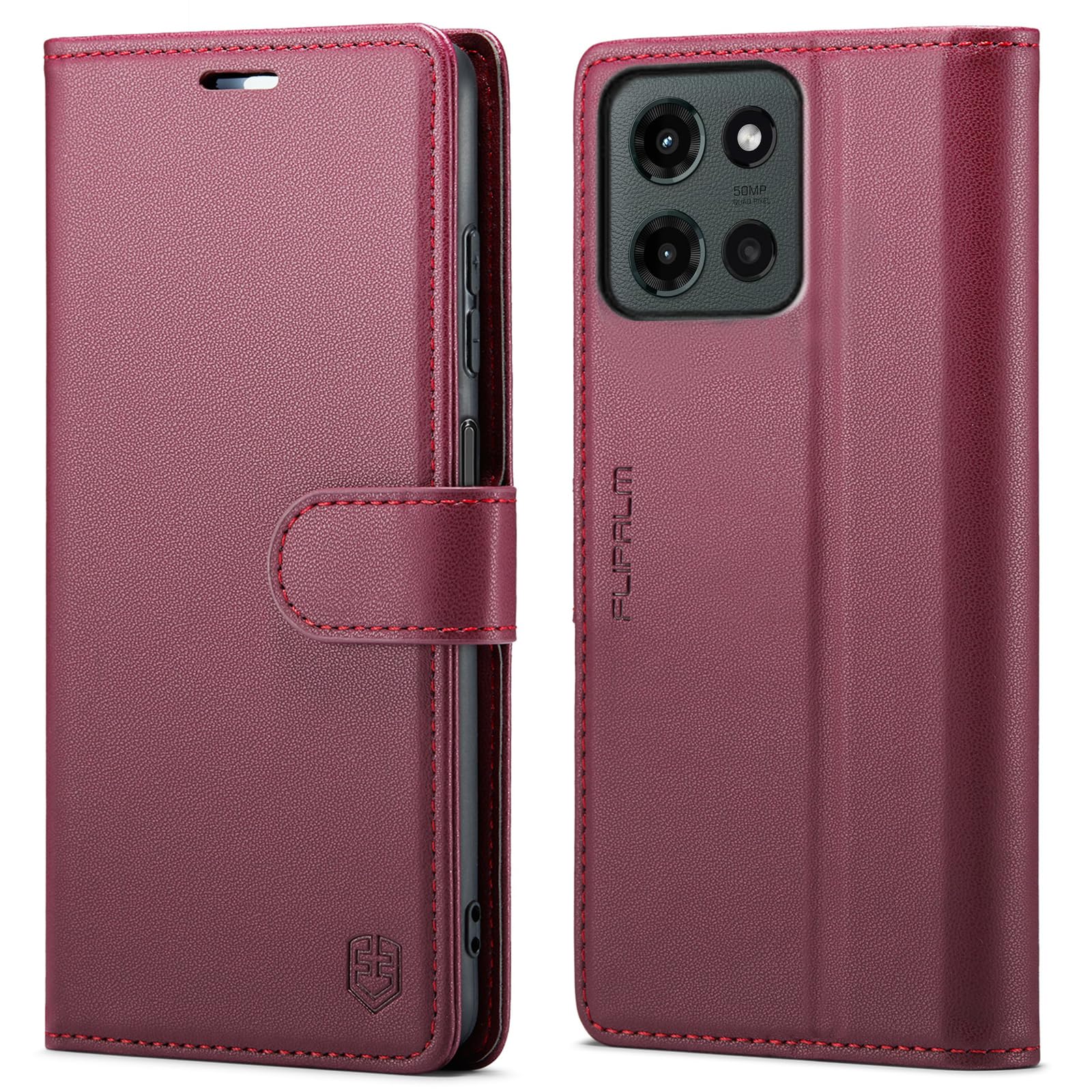 Funda tipo cartera para Moto G 5G 2025, con bloqueo RFID, soporte para tarjetas de crédito, de piel sintética, función atril, fund