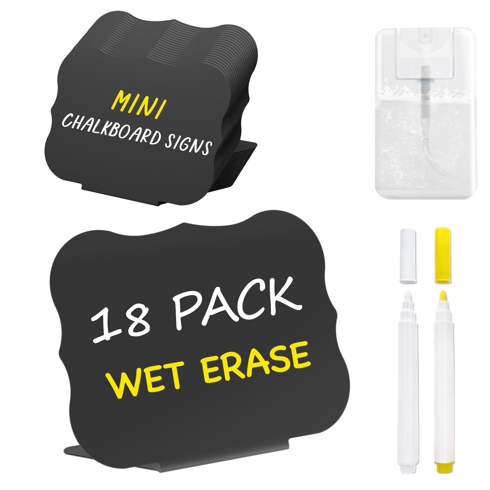 PigPotParty 18 etiquetas de alimentos para bufé de fiesta con aerosol de limpieza, mini letreros de pizarra de 4 x 3 pulgadas que