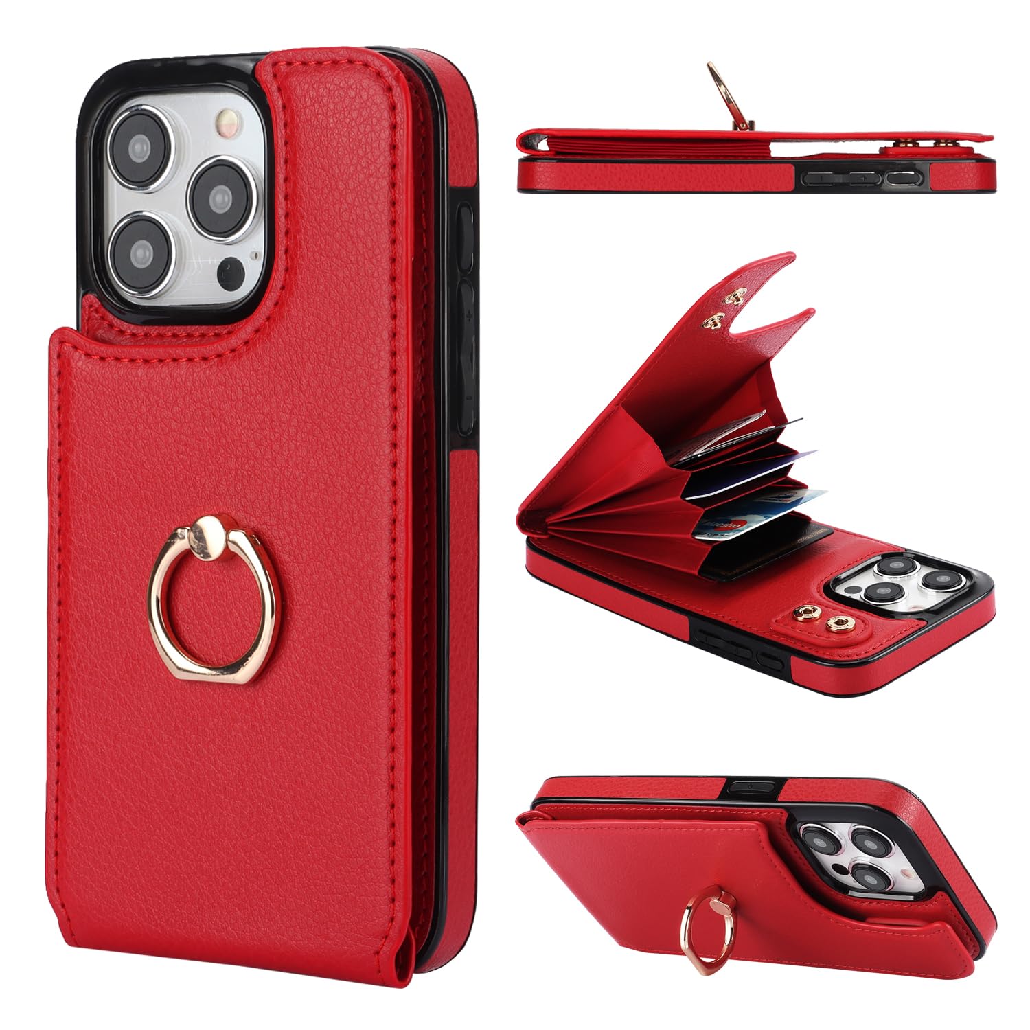 Folosu Funda compatible con iPhone 15 Pro Max con soporte para tarjetas, rotación de 360°, soporte de anillo de dedo con función a