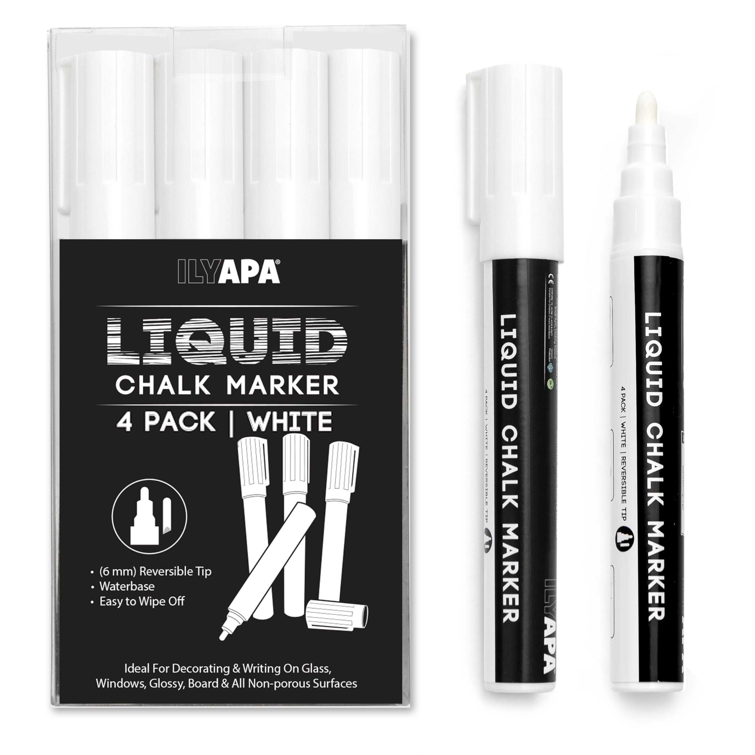 Ilyapa Marcadores de tiza líquida borrables, paquete de 4 bolígrafos de tiza para pizarra, pizarra, pizarra, letreros de pizarra o