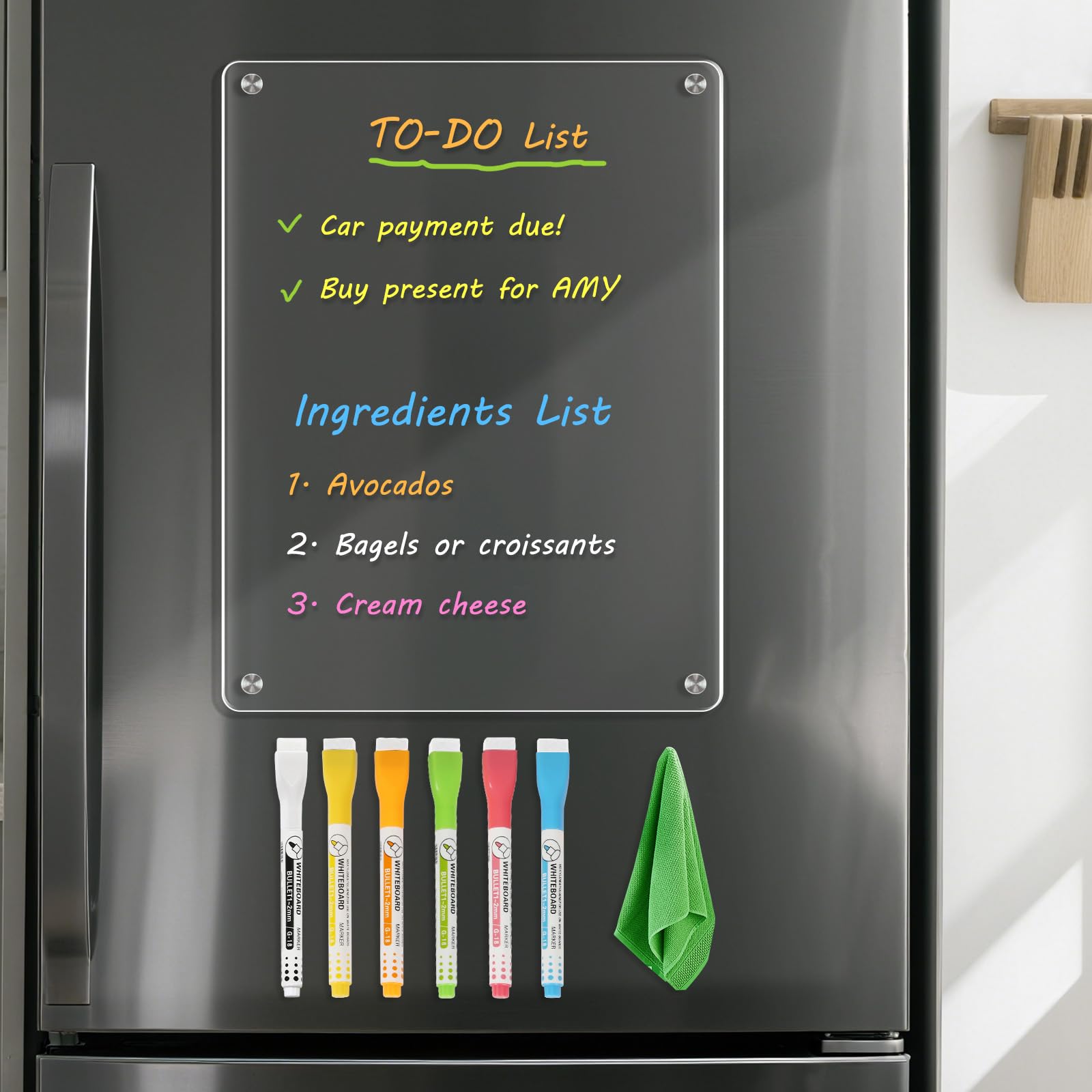 WALGLASS Tablero acrílico para refrigerador, tablero de planificación magnético transparente de 11 x 8 pulgadas, pizarra de borrad