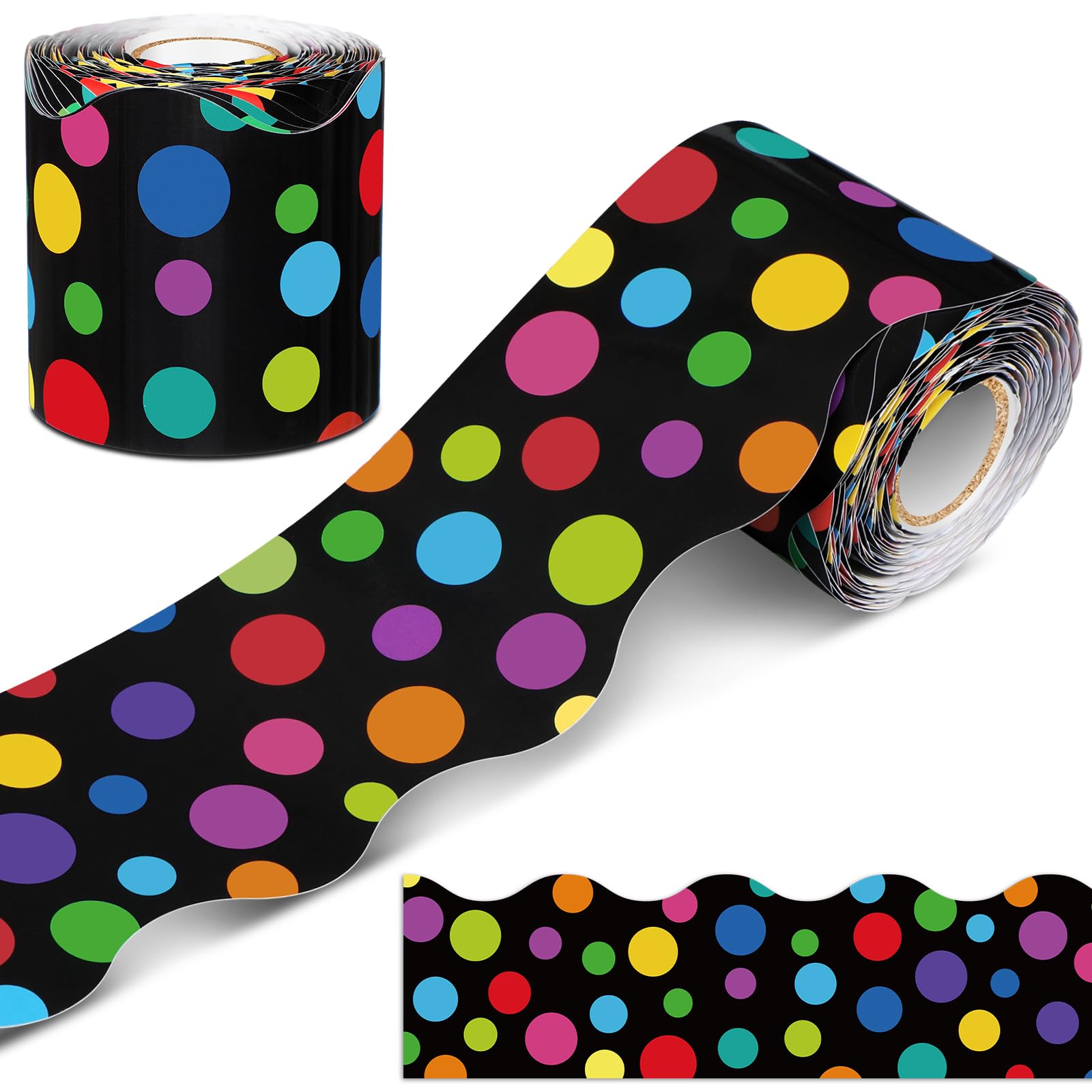 Zonon Bordes de tablón de anuncios de 65.6 pies, bordes festoneados de color arcoíris con puntos decorativos para tablón de anunci
