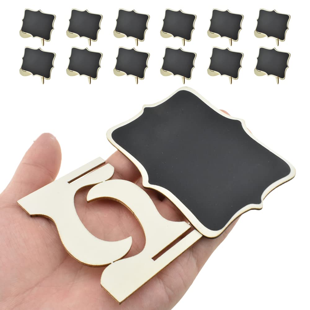 Paquete de 24 mini letreros de pizarra de madera, etiquetas reutilizables para colgar alimentos para bufé de fiesta, tarjetas de l