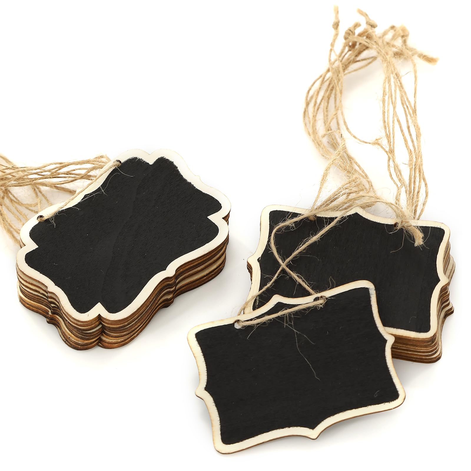 Paquete de 16 etiquetas de pizarra para canastas, letreros de tablero de mensajes con cuerda, etiquetas colgantes para pizarra, mi