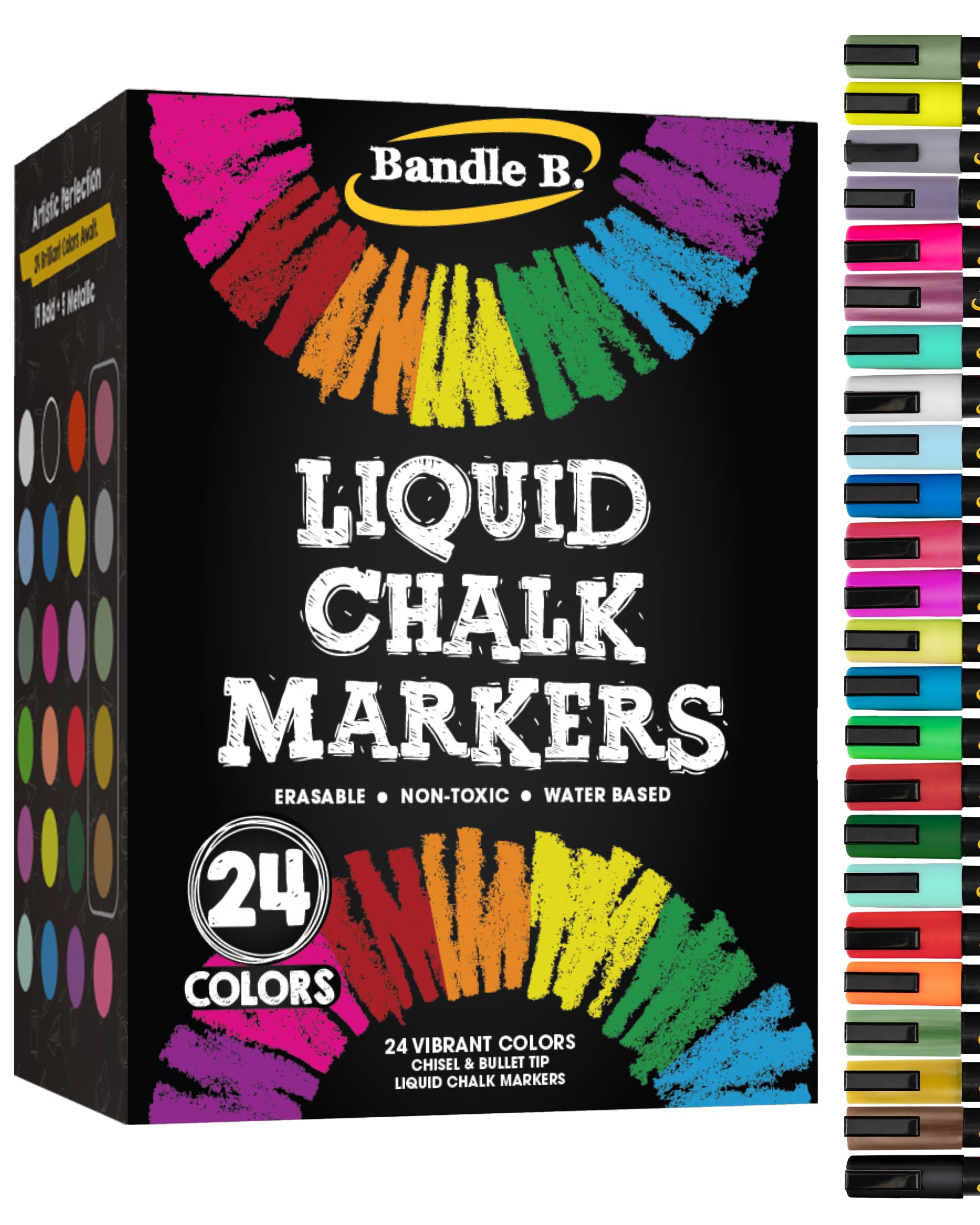 Marcadores de tiza – 24 marcadores vibrantes, borrables, no tóxicos, a base de agua, reversibles, para niños y adultos para vidrio