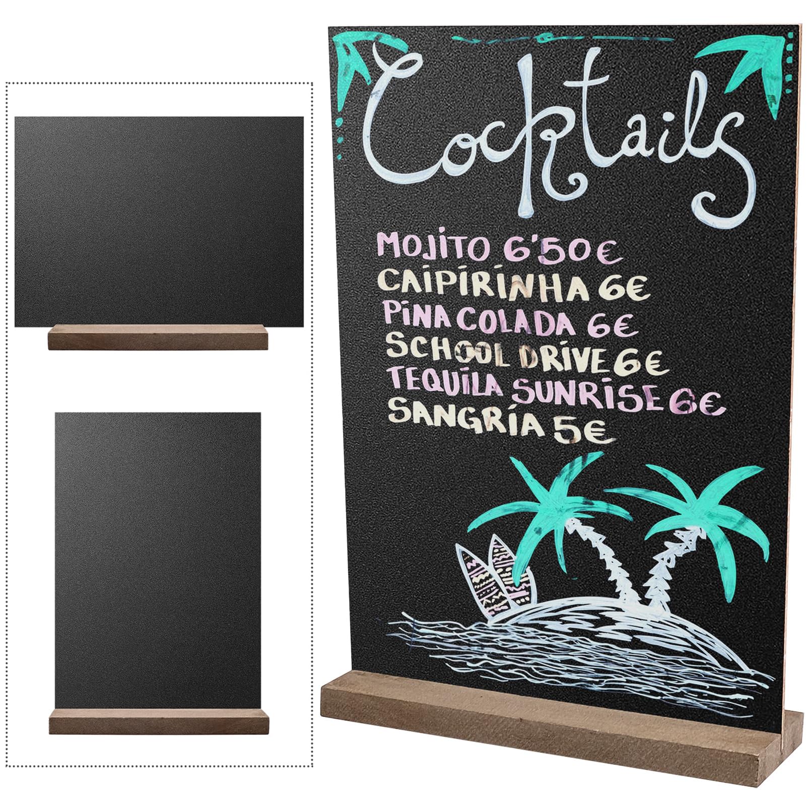 2 letreros pequeños de pizarra, 6 x 9 pulgadas, pizarra de madera vintage de doble cara, tablero de mensajes decorativo con soport