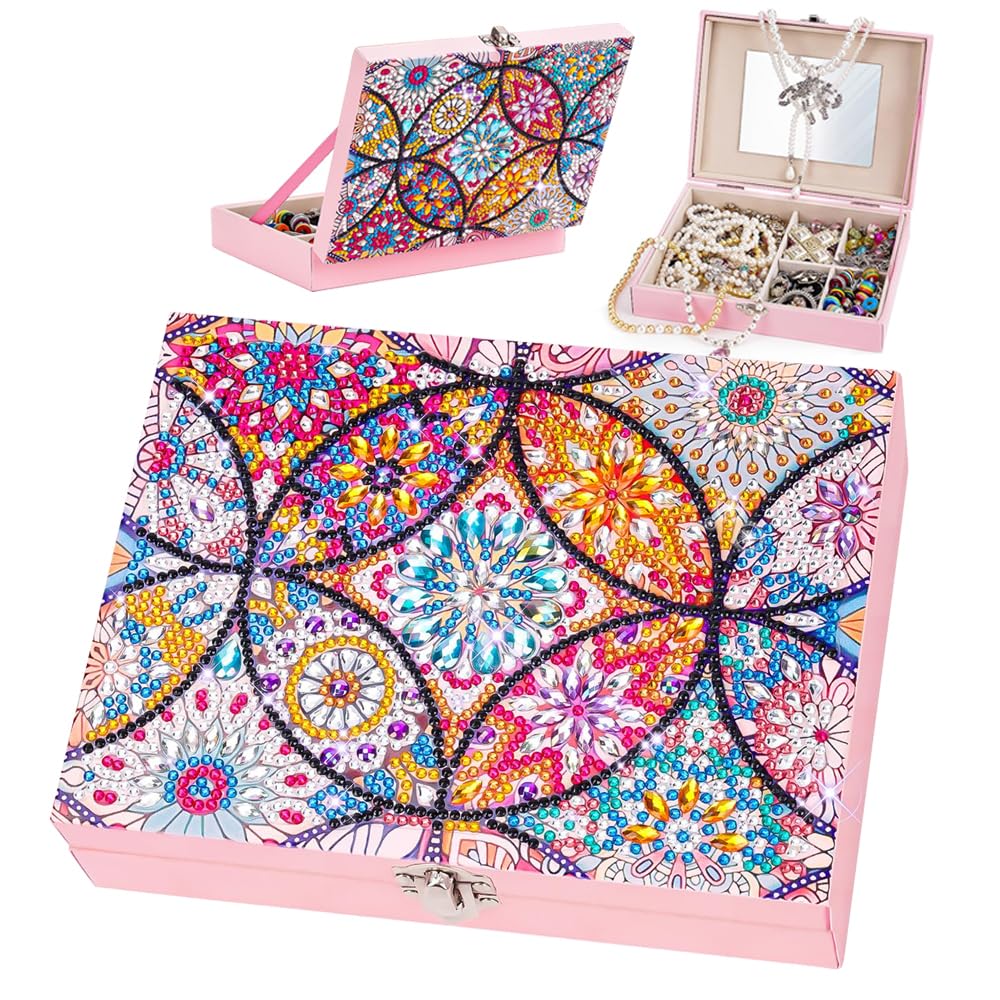 JGJGJG Joyero para niñas, 8.4 x 6.3 x 2.1 pulgadas, kit de manualidades de pintura de diamantes con gemas para niñas de 5 a 12 año