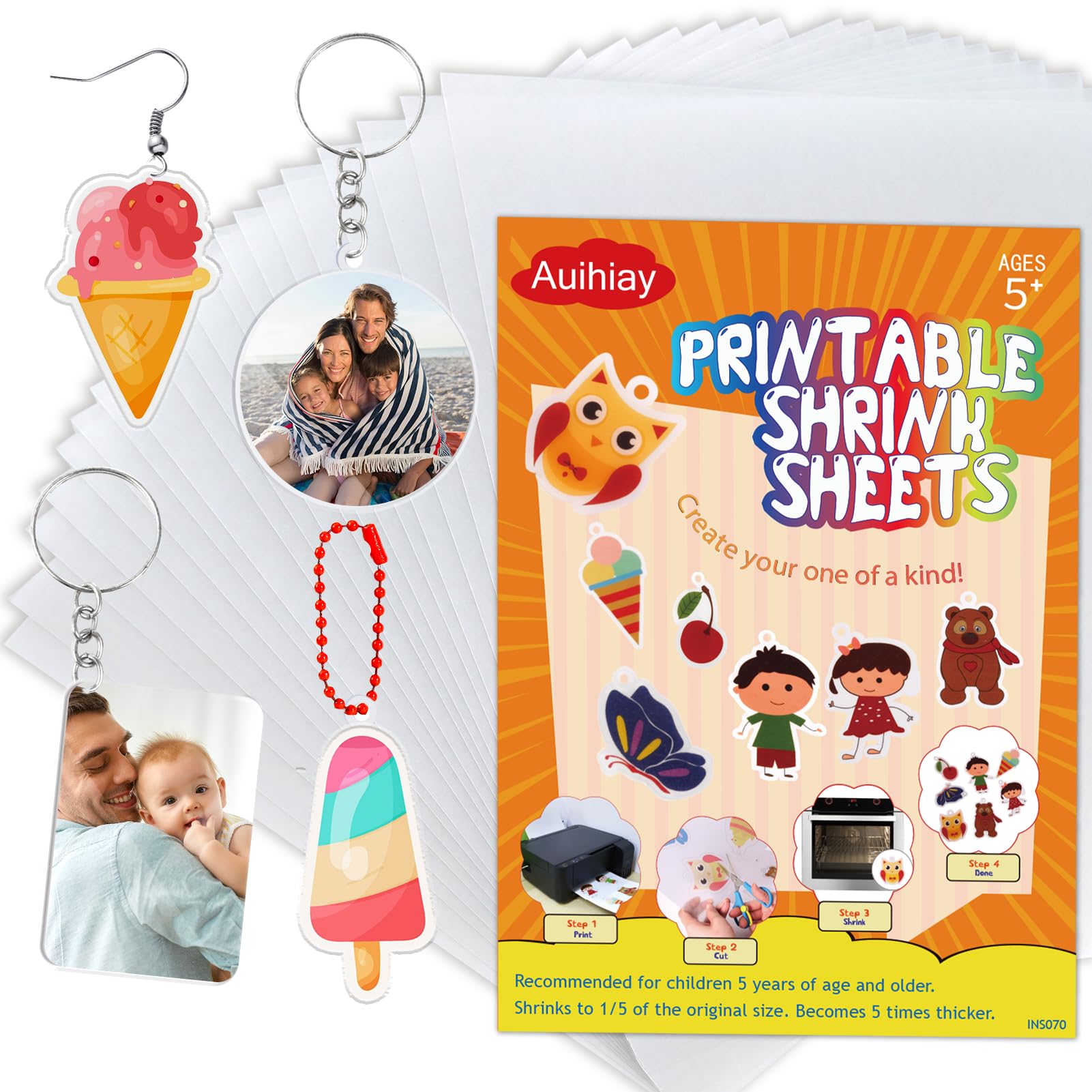 Auihiay Paquete de 35 hojas retráctiles imprimibles para manualidades, papel retráctil para llaveros, joyas y adornos, kits de Din