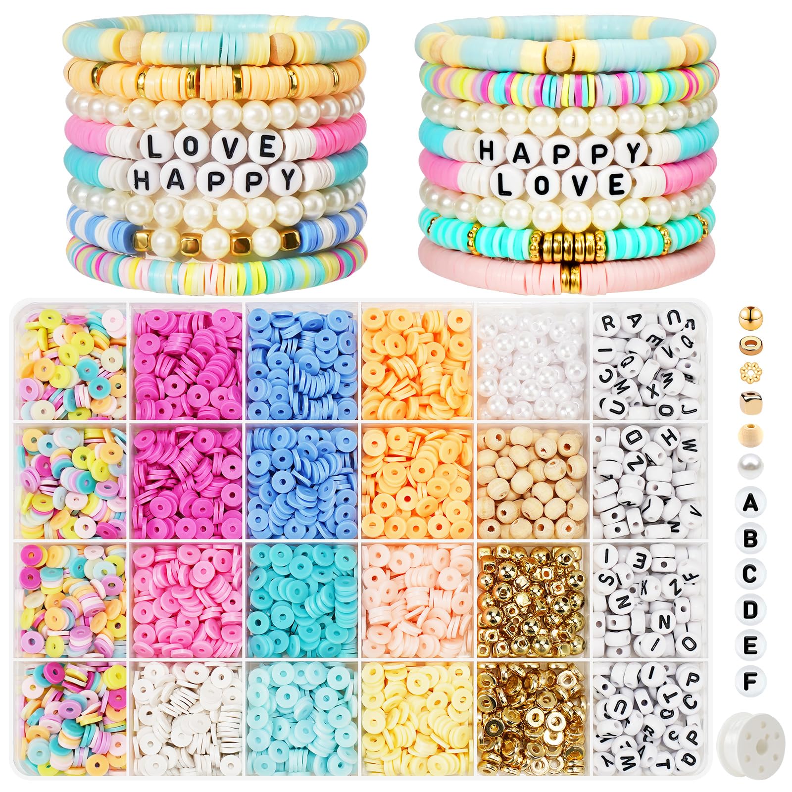 Gionlion 3000 cuentas de arcilla para pulseras, kit de fabricación de pulseras de cuentas de arcilla con cuentas de letras doradas