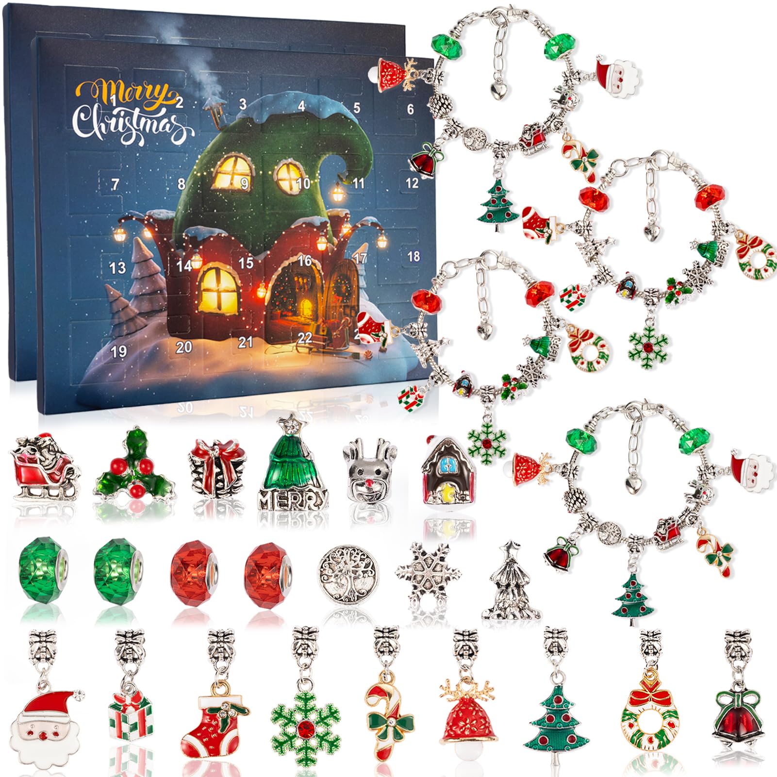 OuMuaMua 2 juegos de pulseras de calendario de Adviento de Navidad 2025 para niñas, calendario de cuenta regresiva de 24 días de N