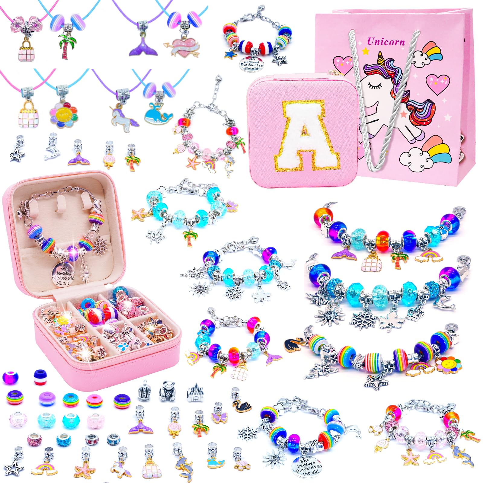 CH HAICHENG Kit de fabricación de pulseras de dijes para niñas, kit de pulsera de unicornio, kit de fabricación de joyas de unicor