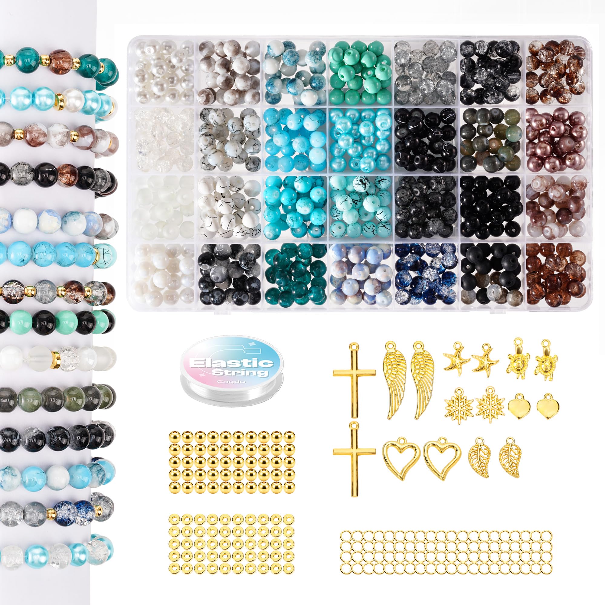 Caydo Juego de 560 pulseras de cuentas redondas bohemias, kit vibrante de fabricación de joyas para niños y adultos