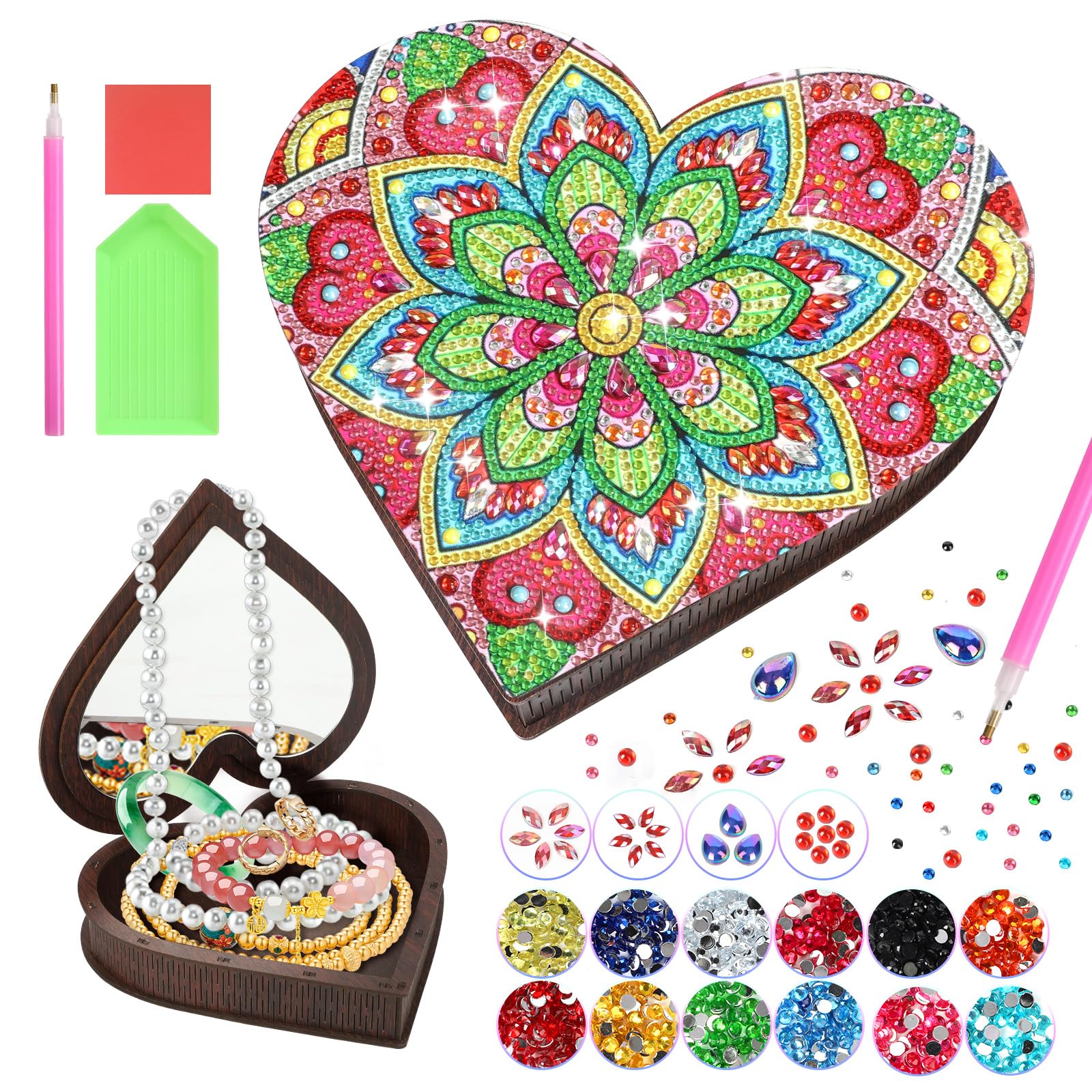 Ambesi Pinta tu propio joyero de madera, kit de caja del tesoro de corazón artístico para niñas, kit de caja de joyería para decor