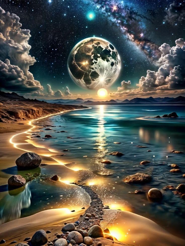 NDNXYXGS Kit de arte de diamantes de luz de luna para adultos, kit de pintura de diamante de luna 5D para principiantes, pintura d