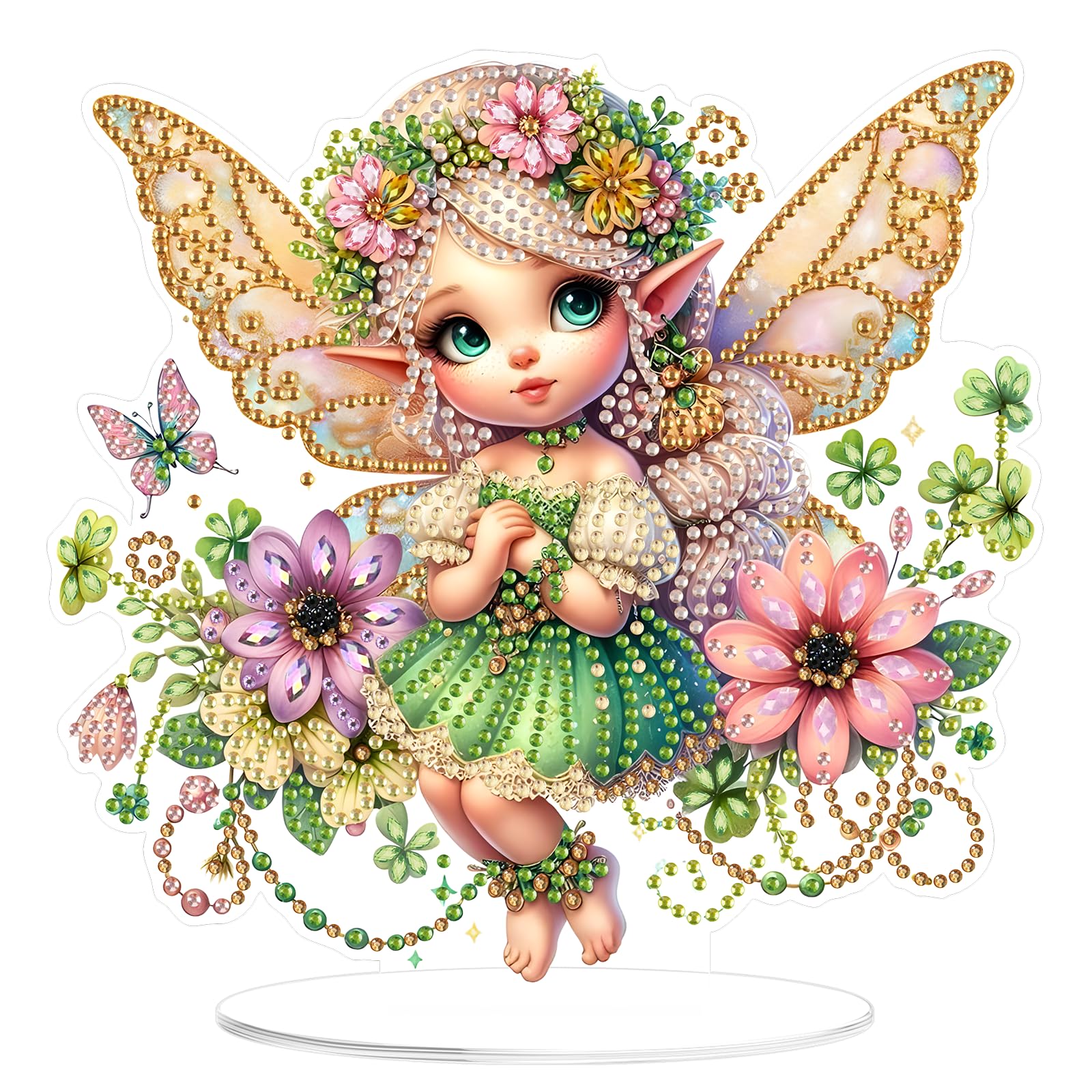 MOGTAA Kit de adornos de escritorio de hadas con diamantes para adultos, kit de adornos de mesa de pintura de diamante de flores d
