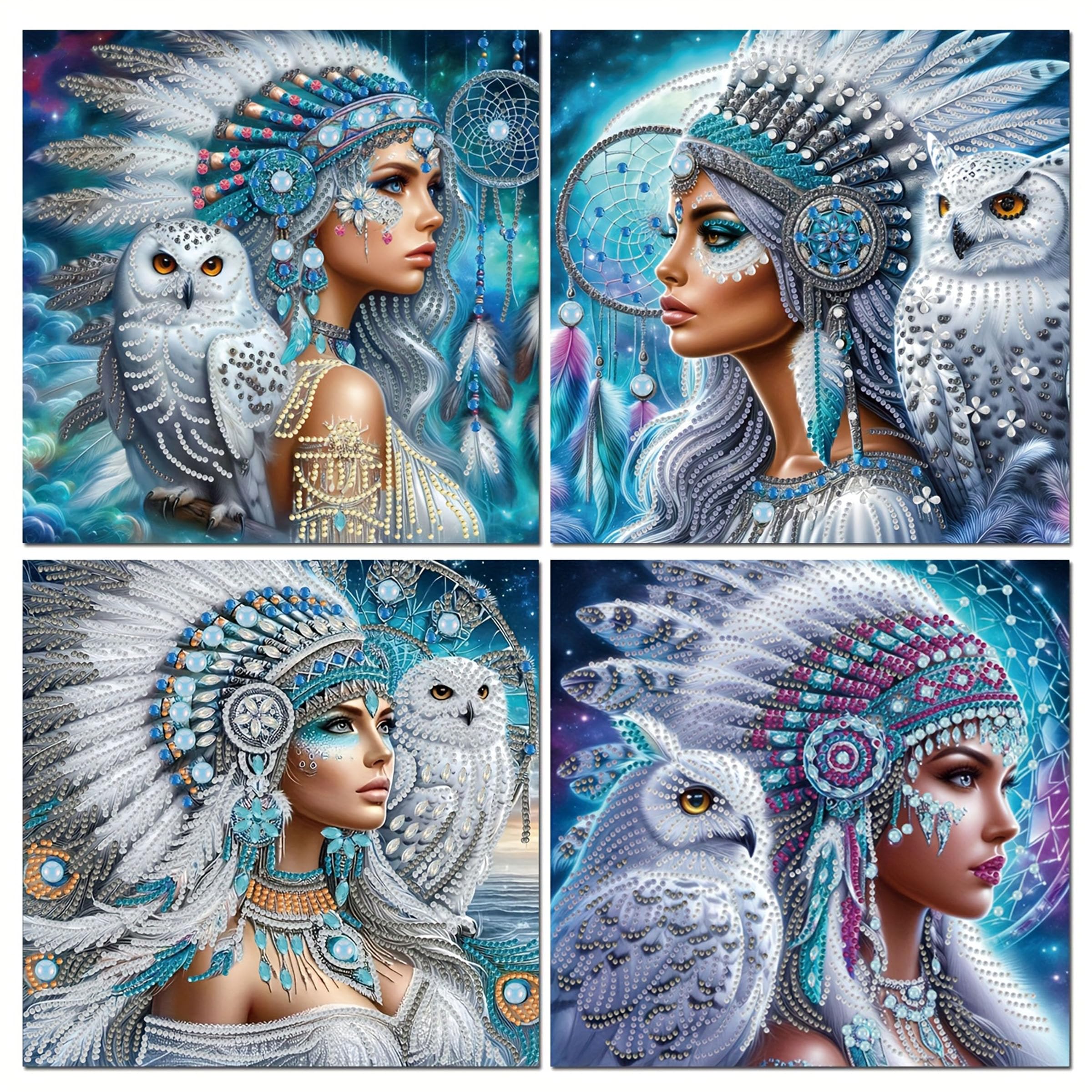 KUFWKEY Juego de 4 piezas de 11.8 x 11.8 pulgadas, mujer nativa, kits de arte de diamantes para adultos, forma especial 5D, kit de