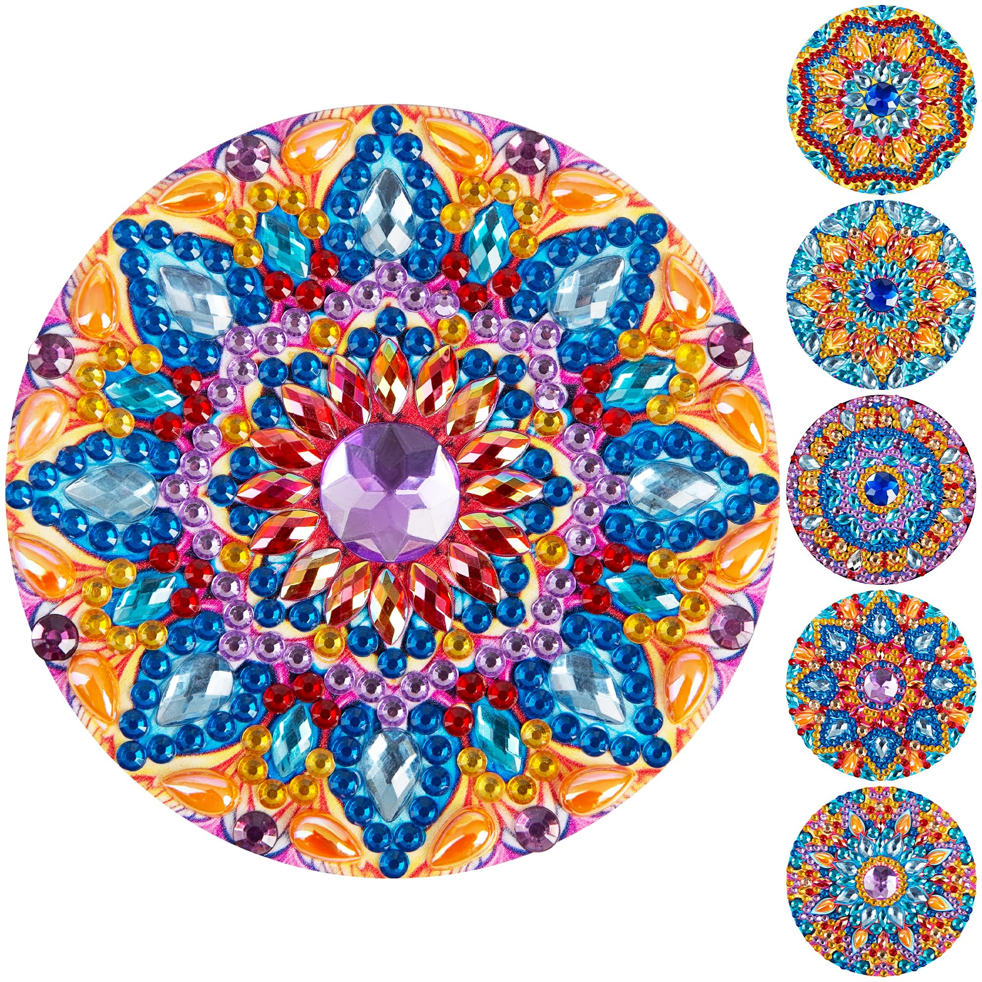 Juego de 6 posavasos con diseño de diamantes para manualidades, mandala con gemas 3D grandes y cristales pequeños, kits de pintura