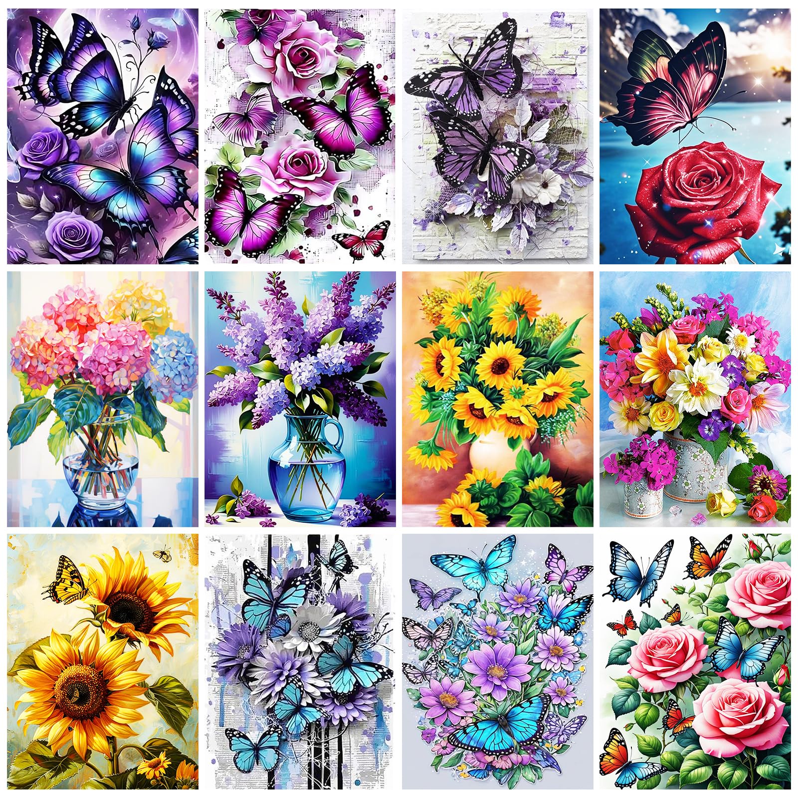 BWFY Paquete de 12 kits de arte de diamantes para adultos, kits de pintura de diamantes 5D para adultos, pintura de serie de flore