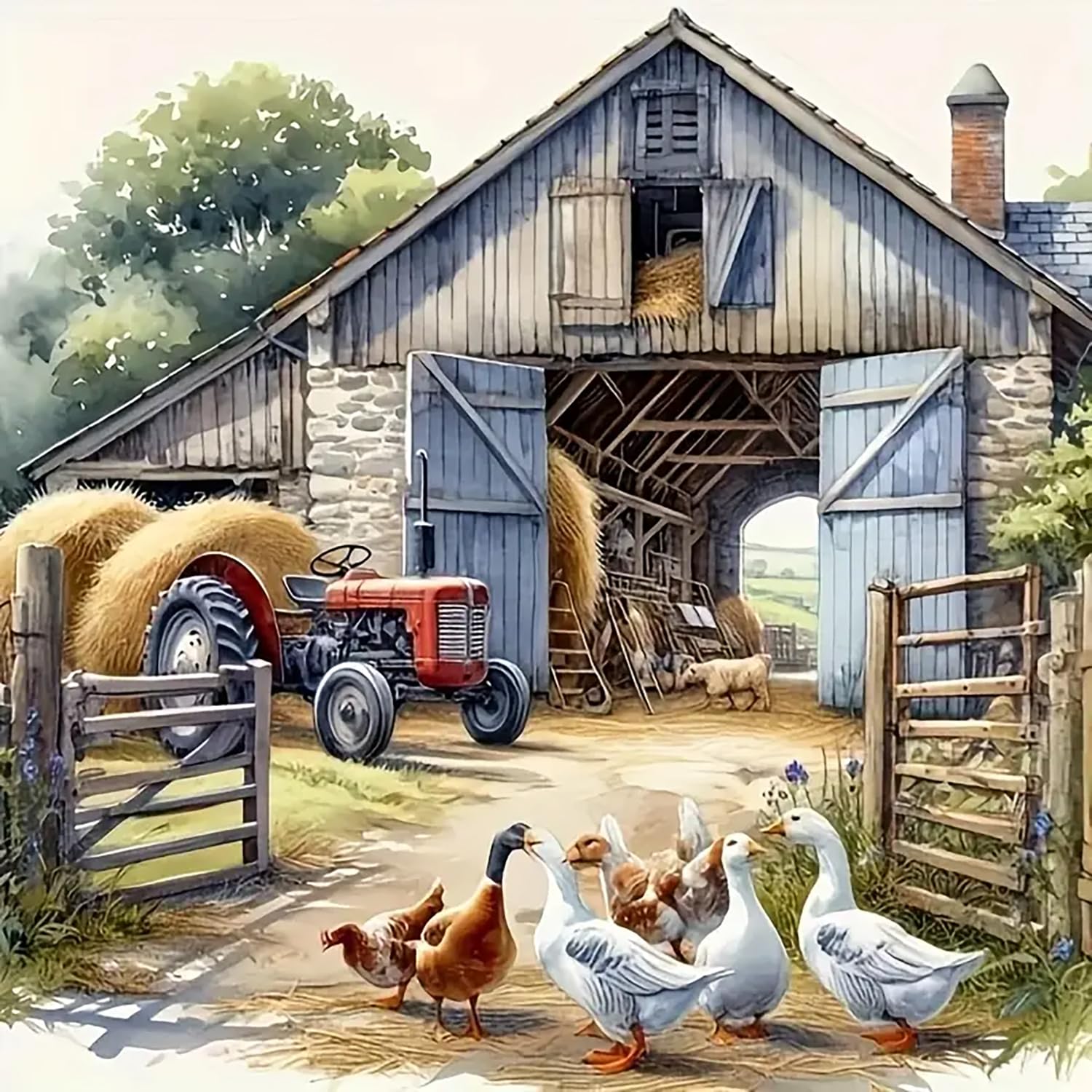 CHWGLFGG Kits de arte de diamantes 5D para adultos principiantes, kits de pintura de diamantes de granja, pintura de taladro redon