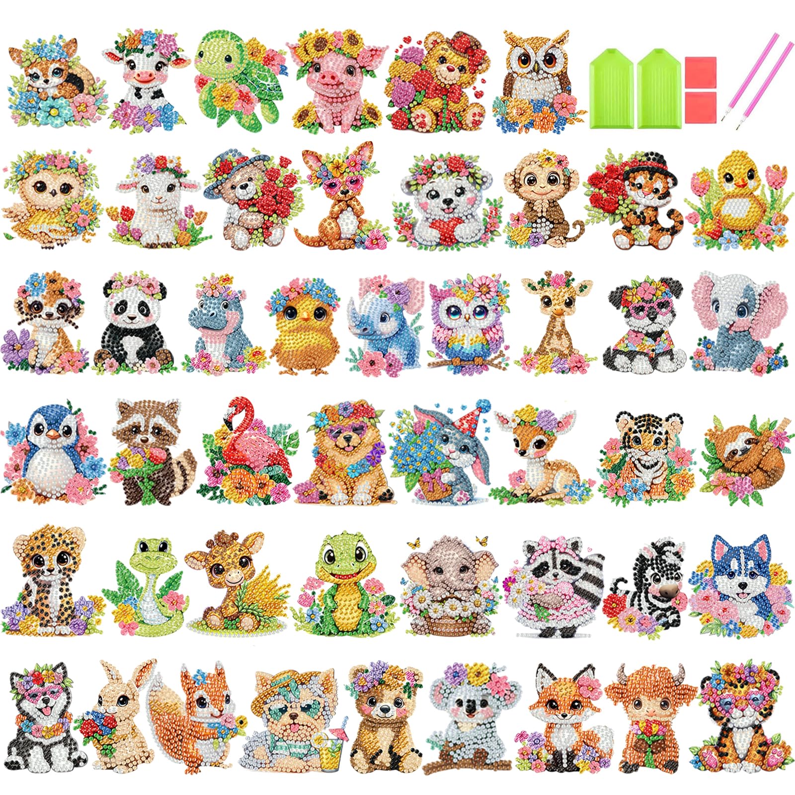xackcme 48 piezas de calcomanías de pintura de diamantes para niños, kit de calcomanías de gemas de diamantes de animales, calcoma