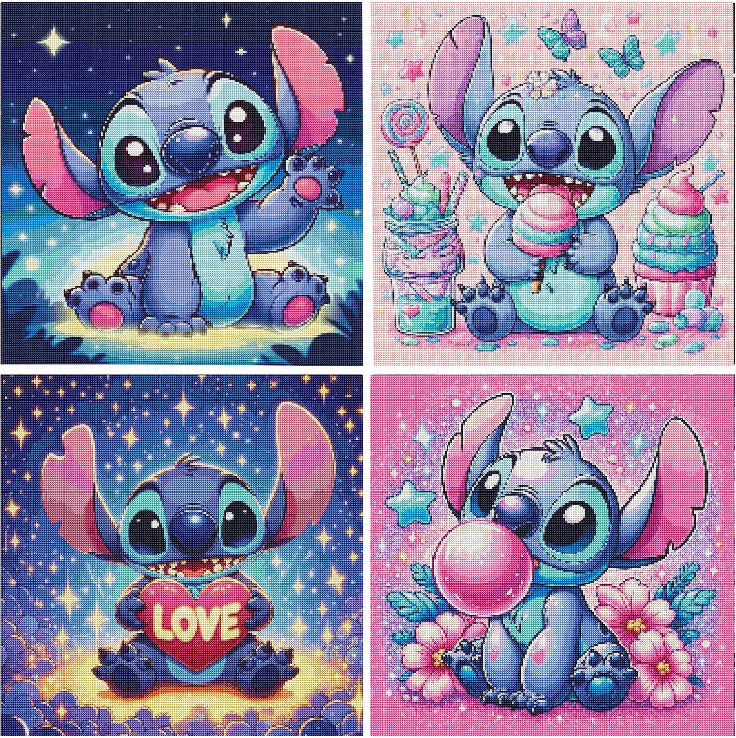 JAKI Paquete de 4 kits de arte de diamantes de dibujos animados para adultos, kits de pintura de diamantes para adultos, kits de a