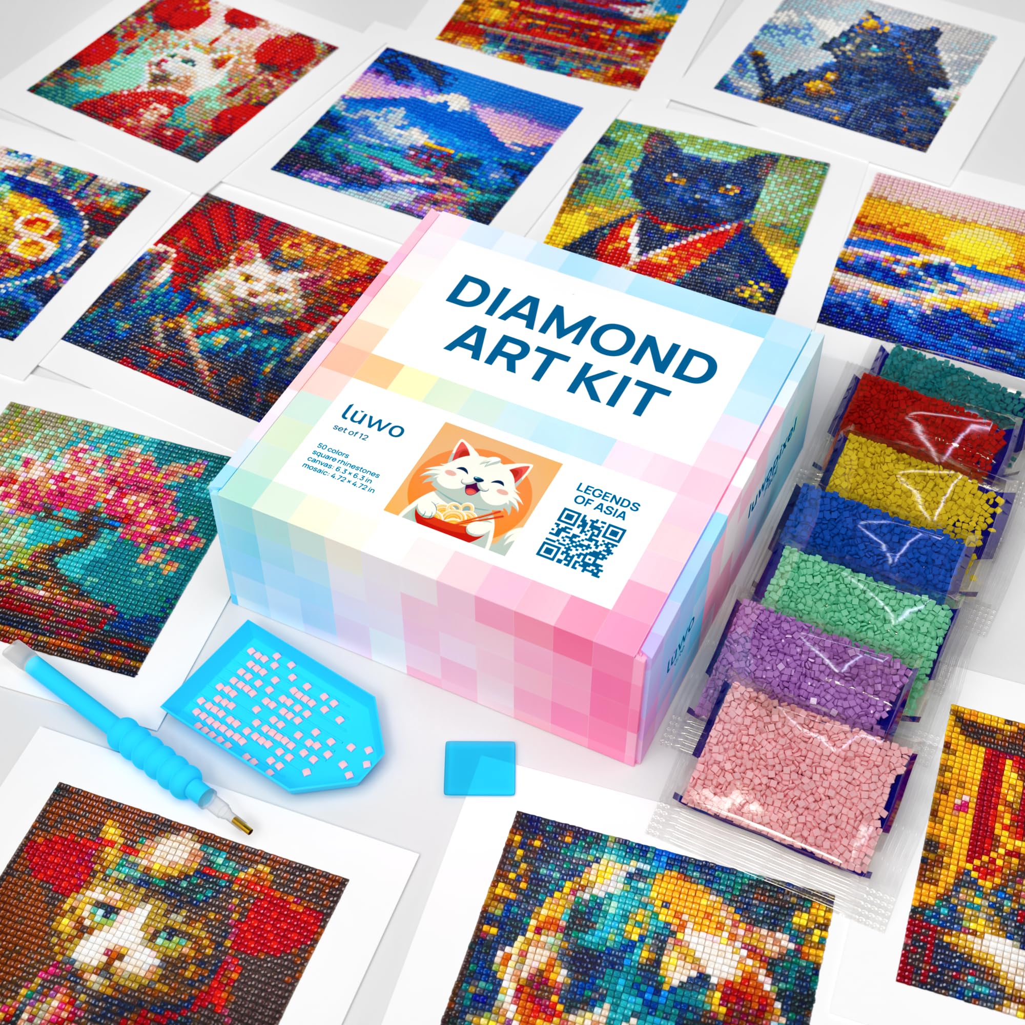 Leatrice Juego de 6 piezas de arte de diamantes 5D para adultos, kit de pintura de diamantes pequeños, estuche para lentes, carcas